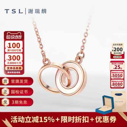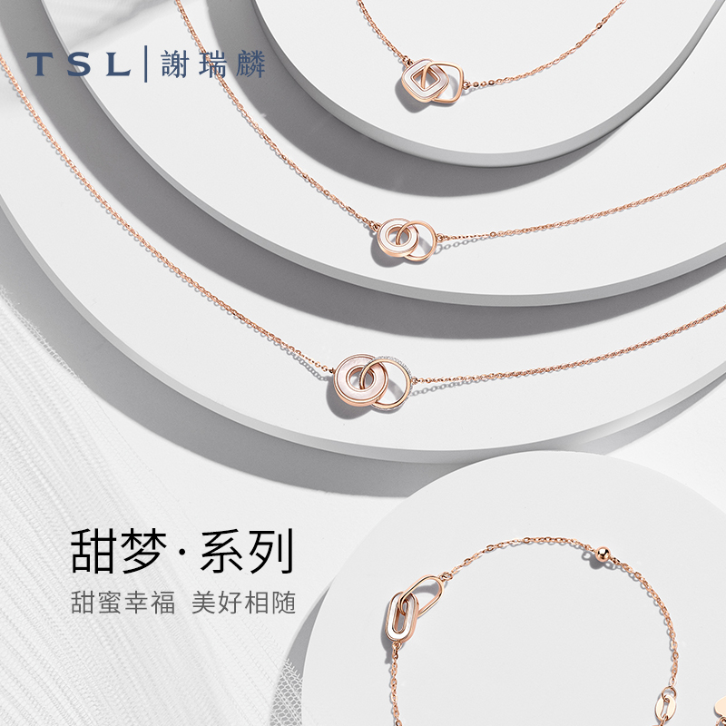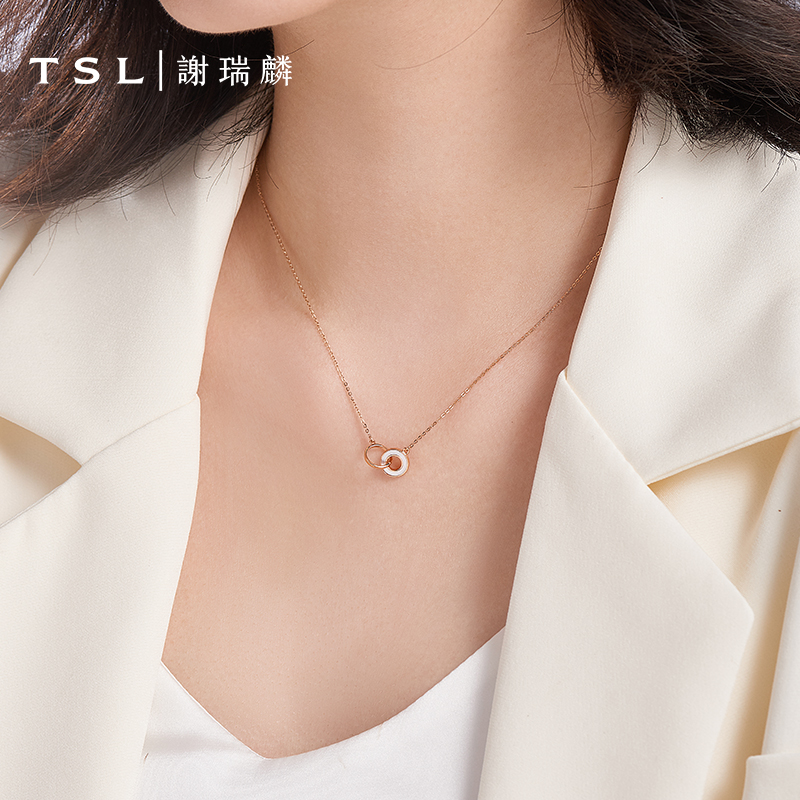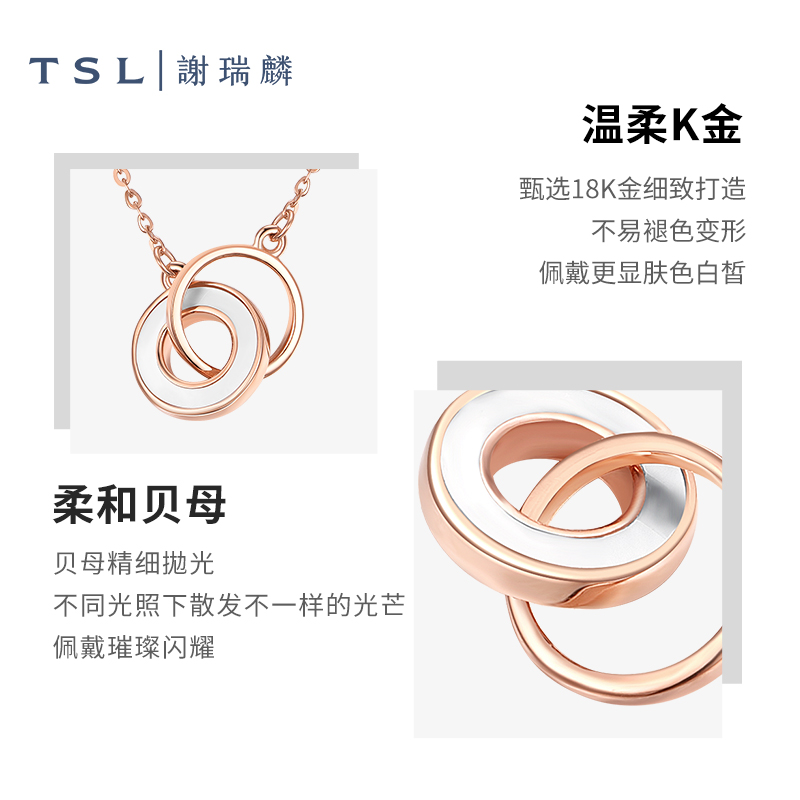 TSL谢瑞麟甜梦系列18K金双环项链锁骨链贝母套链64970