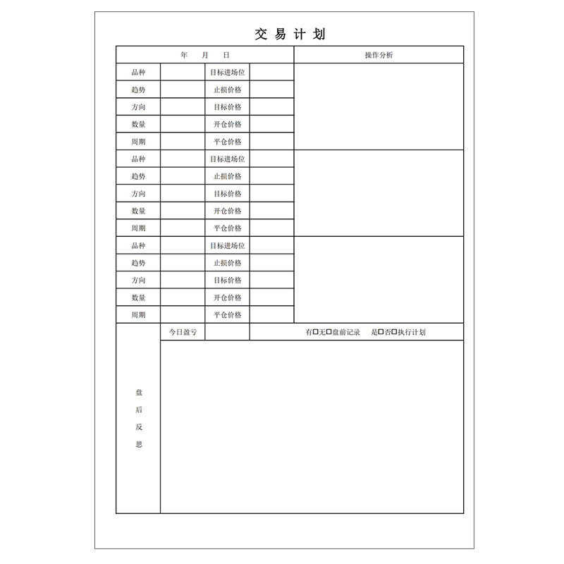 期货交易记录本股票交易记录炒股笔记本股市行情日记交易计划复盘