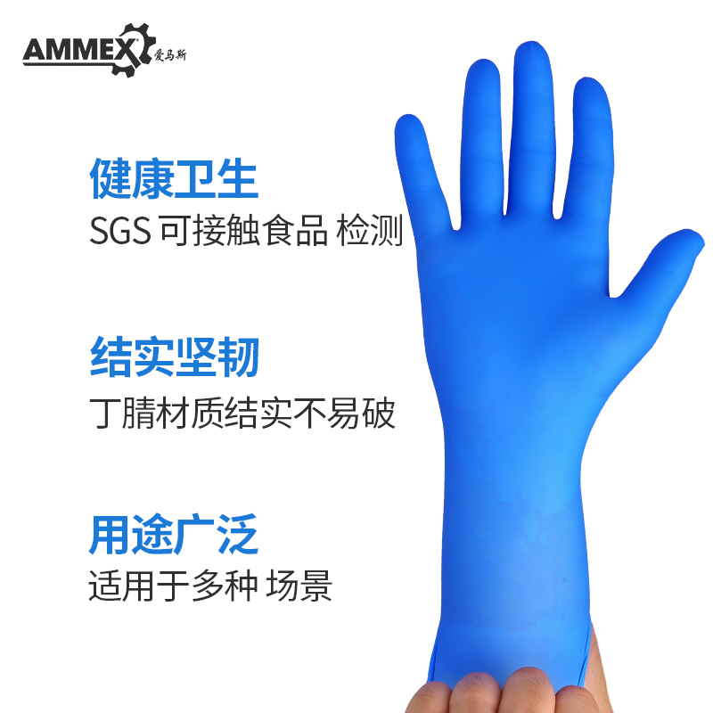 爱马斯一次性手套乳胶耐用加厚橡胶实验室食品级餐饮劳保厨房丁腈