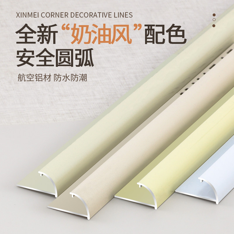 奶油风瓷砖阳角条弧型金属收边条羊角封边铝合金收口条阳角线圆弧