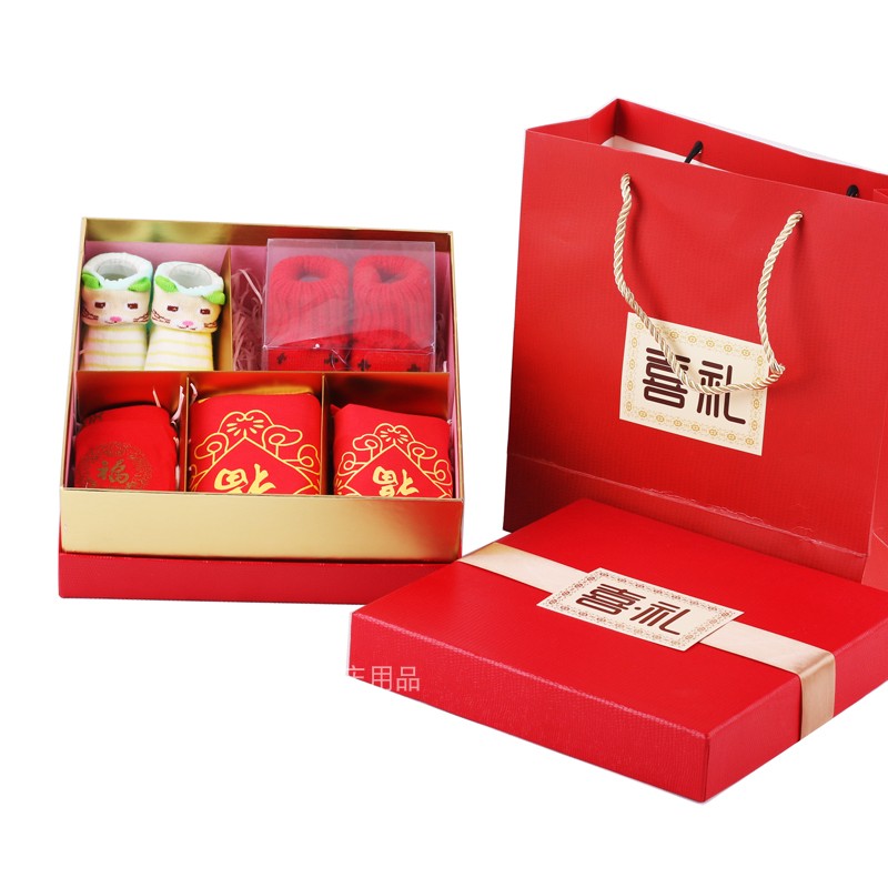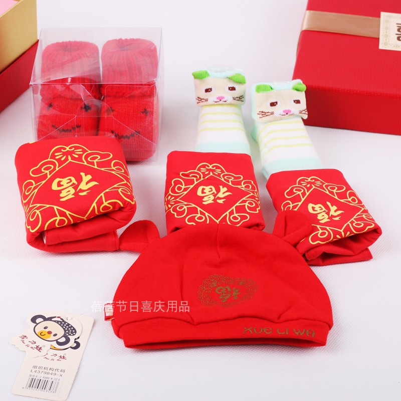 子孙三宝结婚陪嫁虎头鞋子孙鞋新生婴儿肚兜帽子袜子6件套礼盒装