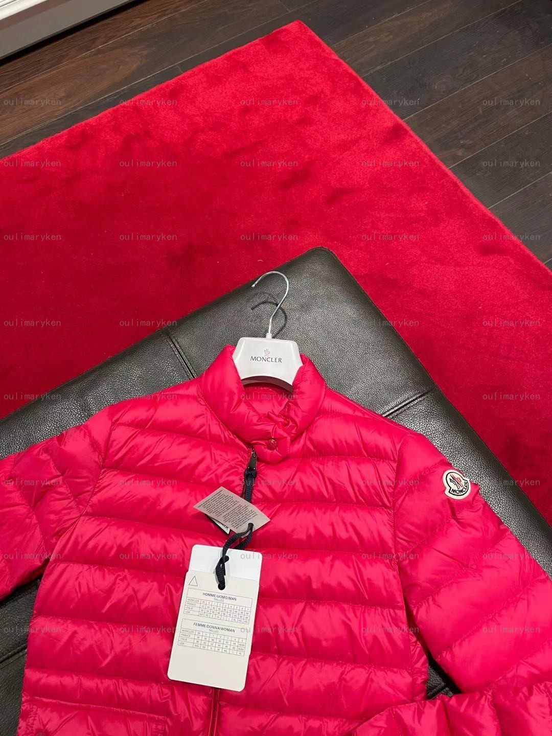 意大利奥莱 moncler 女士经典立领薄款羽绒服 LANS 玫红色 00 0码