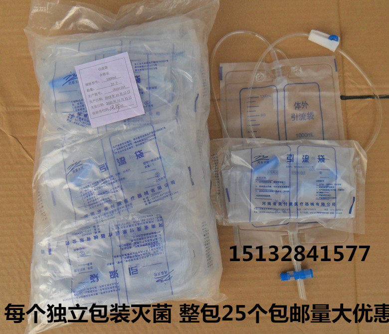 包邮滑轮一次性流袋 灭菌防逆流引流袋接尿袋加长1米管导尿袋25个