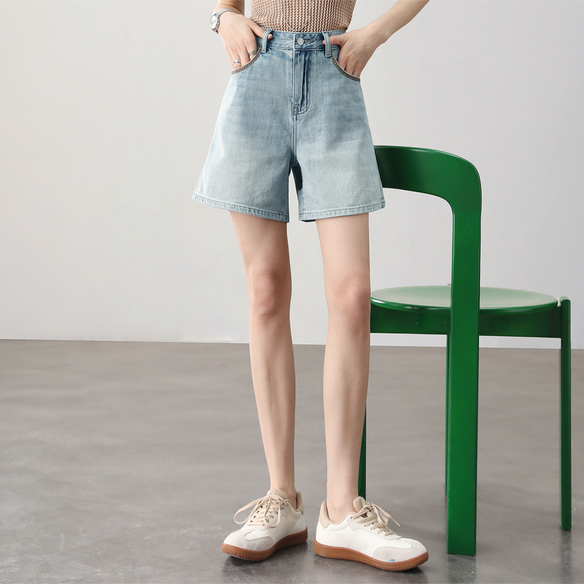 W【甜酷风短裤】 时尚牛仔短裤夏薄款亮色绣线潮流A字四分裤