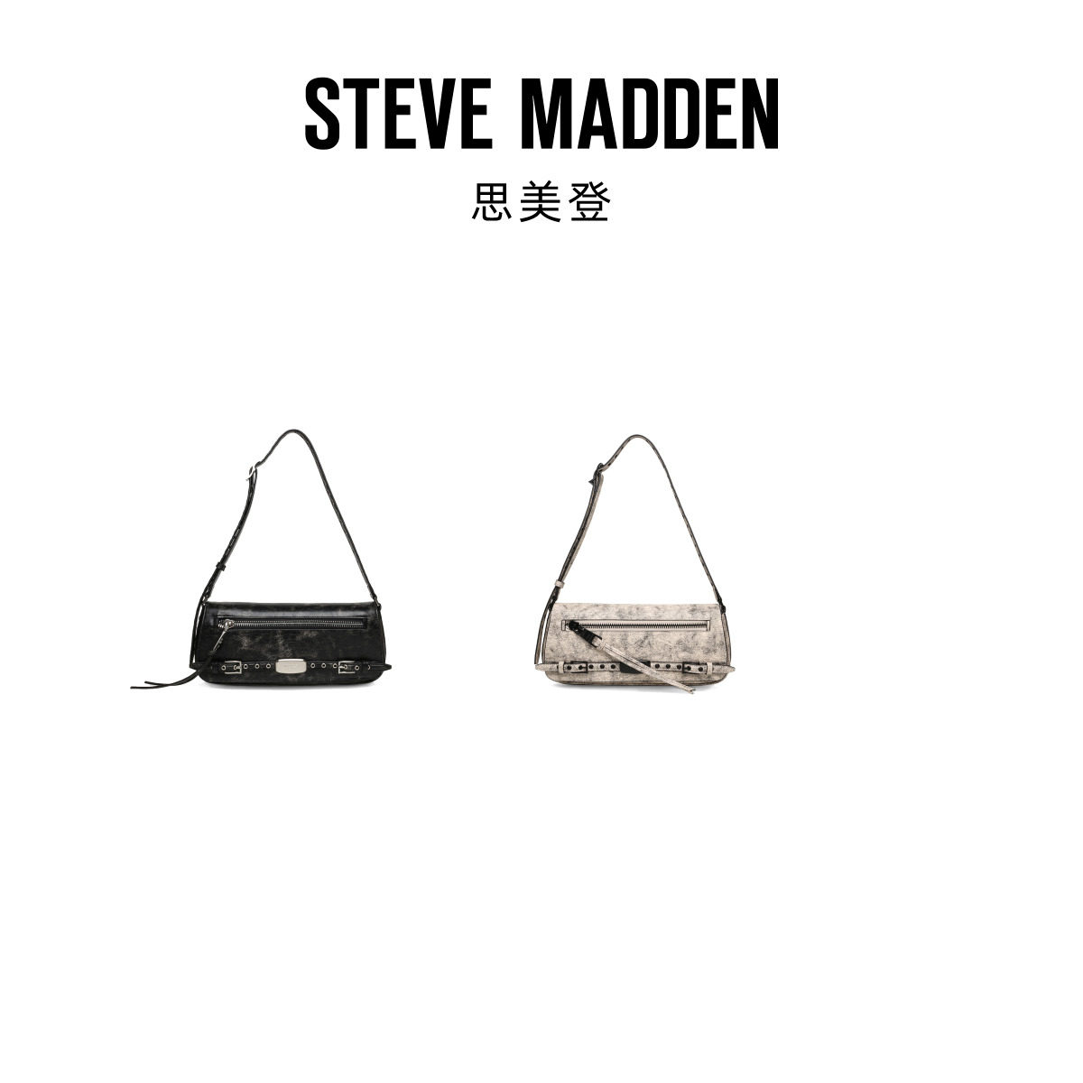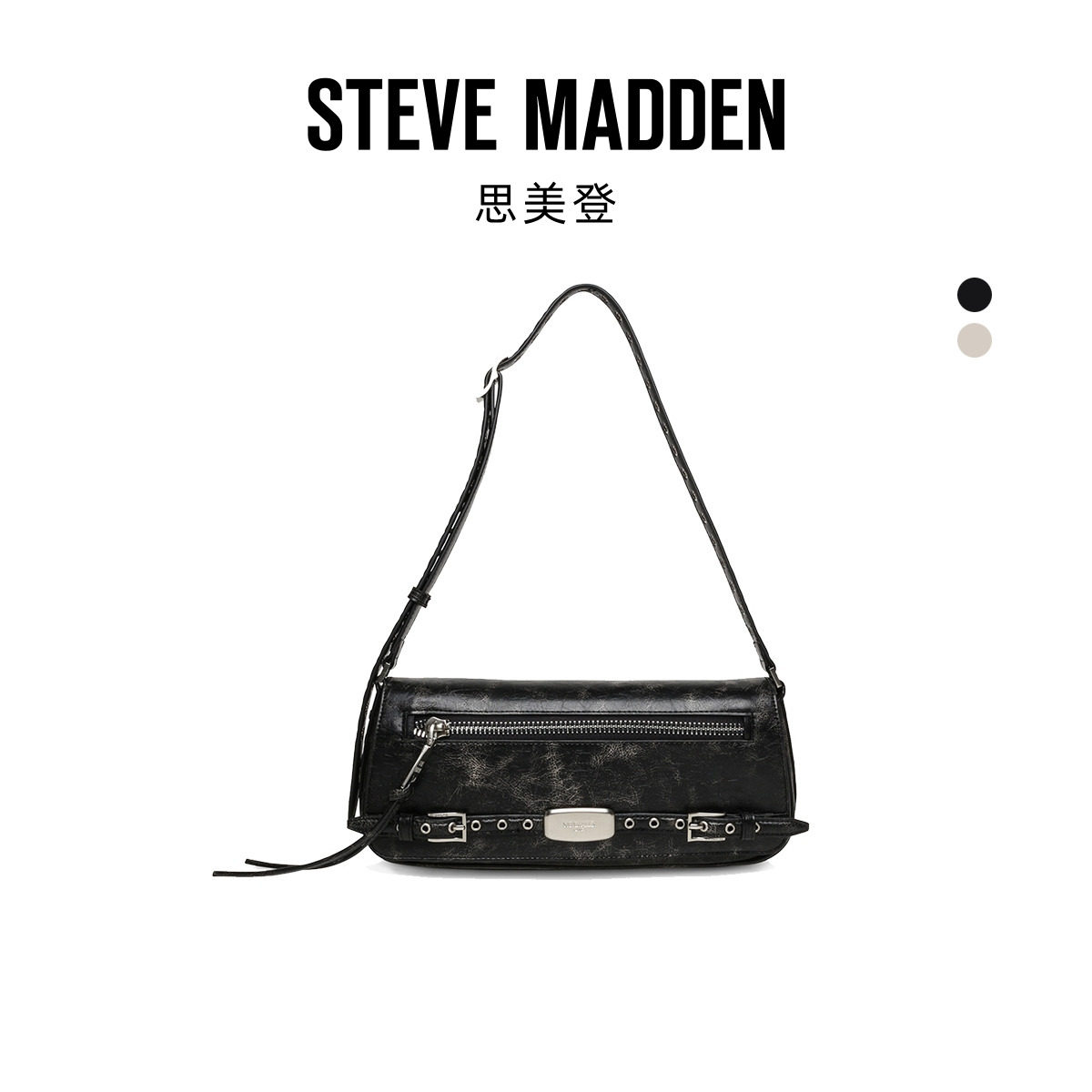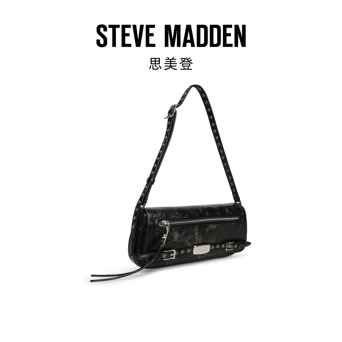 Steve Madden思美登BINDARA26春季焕新铆钉腋下包法棍包保龄球包