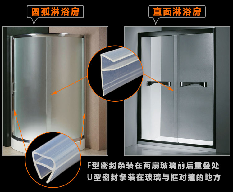 迪福德U型平移无框玻璃门防撞密封条淋浴房防水条防风硅橡胶条
