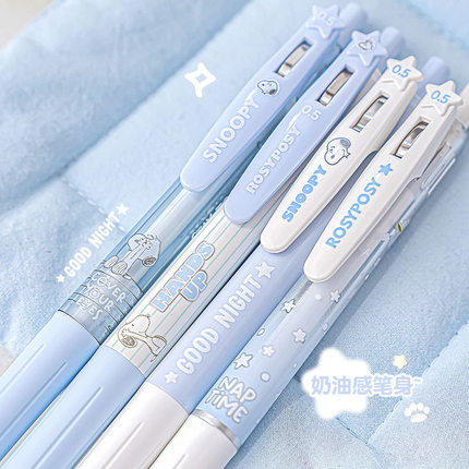 正版SNOOPY史努比限定中性笔RosyPosy联名款签字笔奶油风CS双珠速干顺滑刷题笔学生考试笔按动式水笔黑色0.5