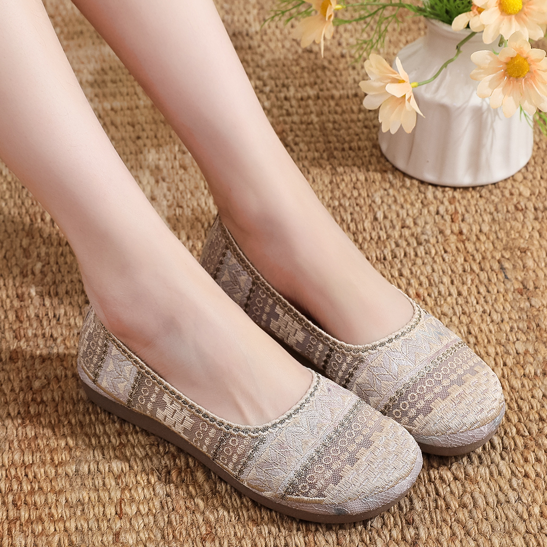 夏季新款网面鞋一脚蹬懒人鞋女浅口平底老北京布鞋女透气妈妈鞋女