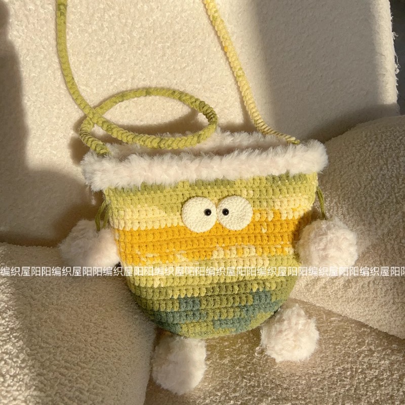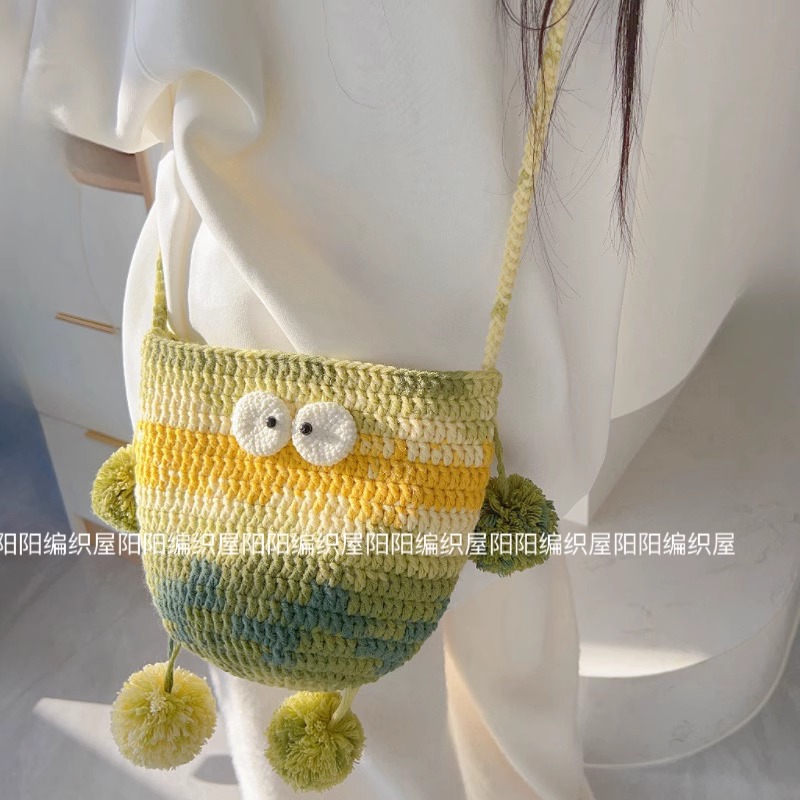 小怪兽毛线编织包手工DIY材料包创意礼物之绿怪兽成人儿童斜挎包