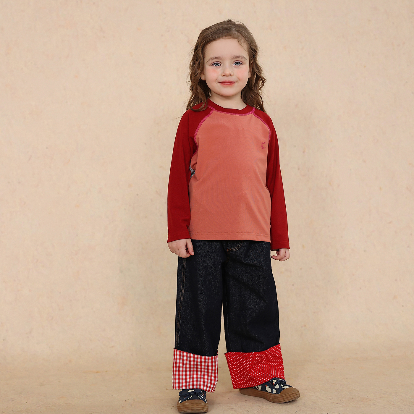 允儿妈女童拼色插肩袖长袖T恤
