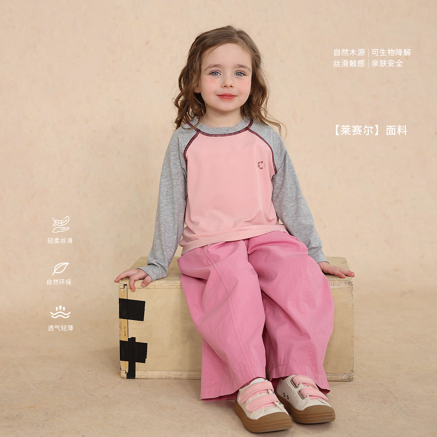 允儿妈女童2025秋季新款天丝插肩袖T恤 宝宝儿童春夏百搭长袖上衣