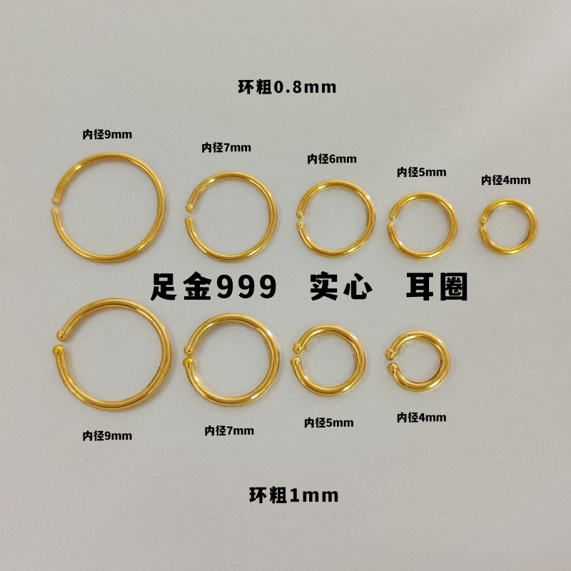 手工纯金养耳圈999足金养耳棒迷你黄金耳环素圈耳骨圈圆环耳钉女