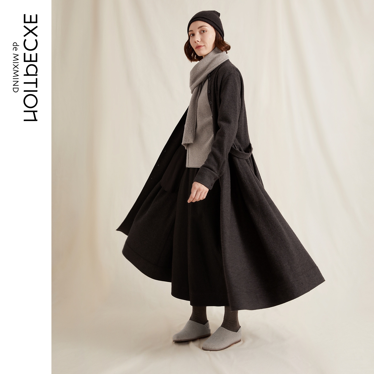EXCEPTION例外女装秋冬款宽松气质收腰显瘦羊毛针织连衣裙