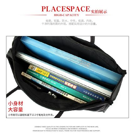 轻便手袋大容量手提包男包商务休闲文件包简约公文包横款黑色布