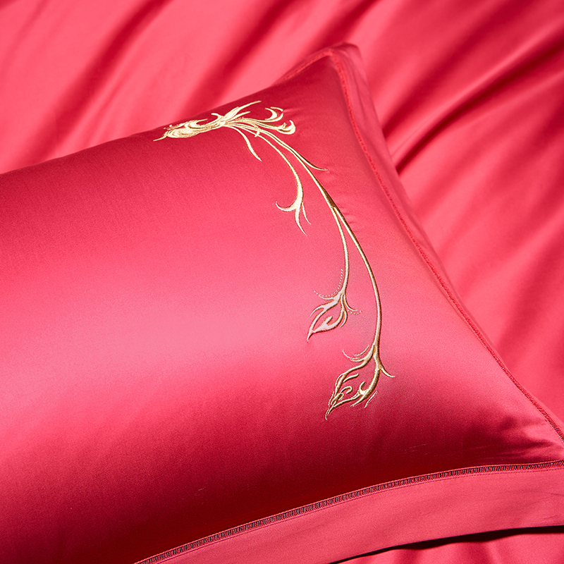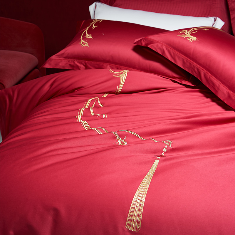 罗莱家纺婚庆结婚床上用品100支贡缎长绒棉纯棉全棉大红色新婚