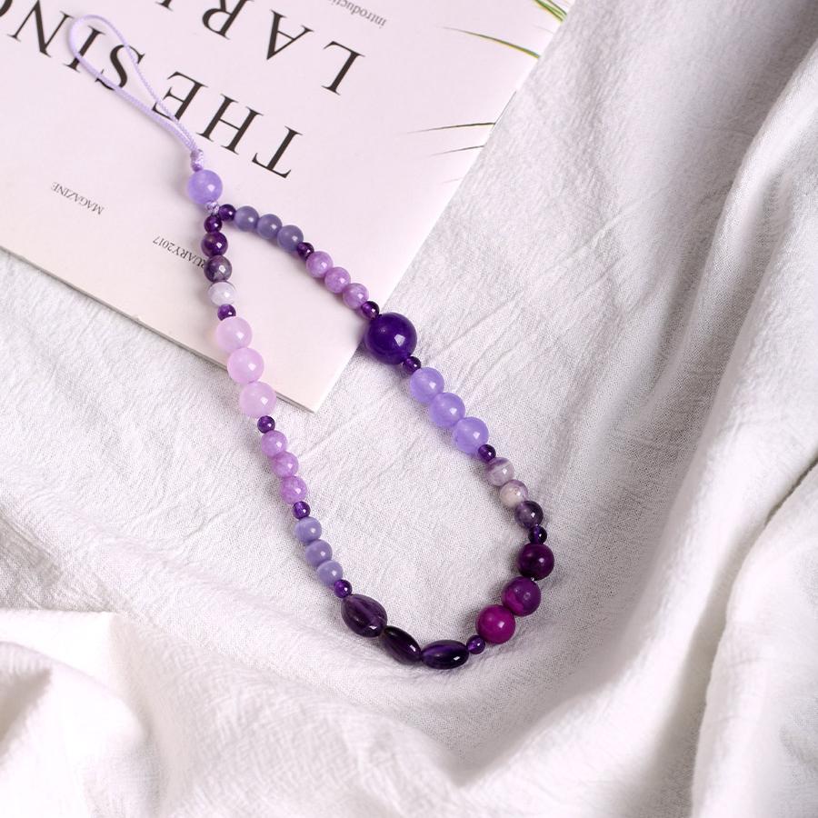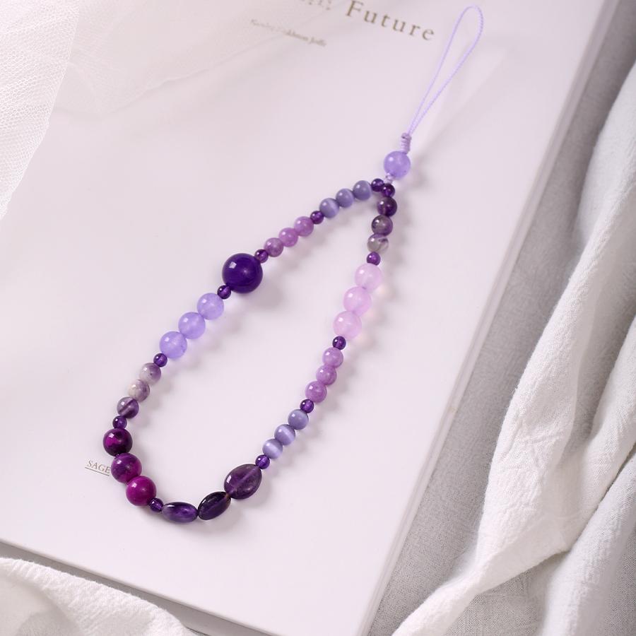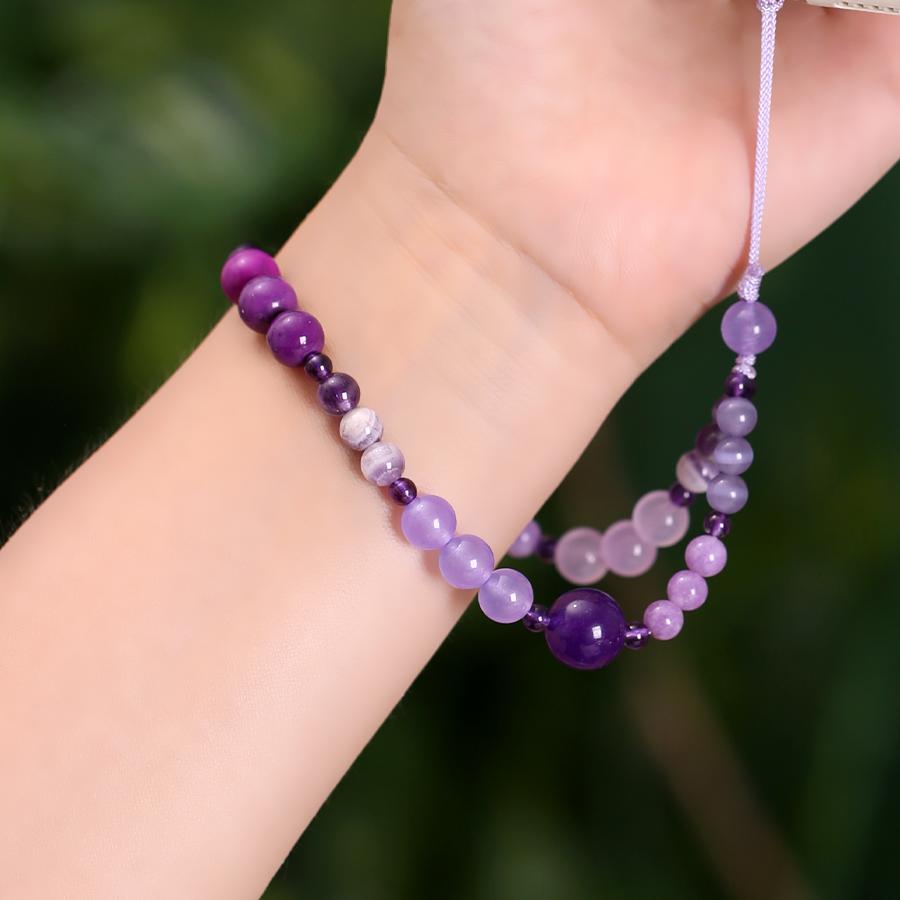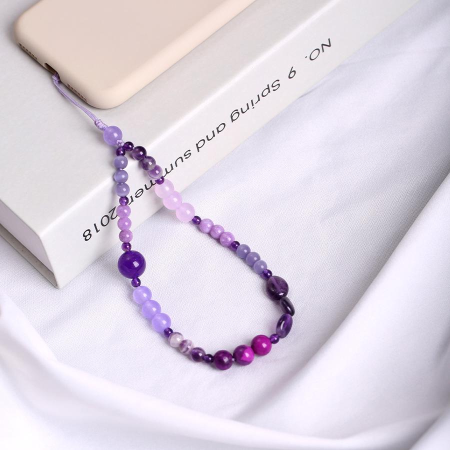 紫水晶手机链挂绳挂件女款长包钥匙扣吊坠指环手腕绳玉石腕带防丢