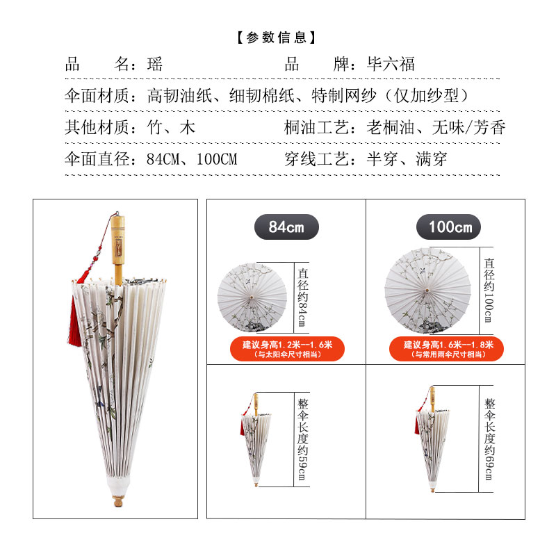毕六福油纸伞古风道具女实用防雨防晒晴雨两用传统手工汉服伞雨伞