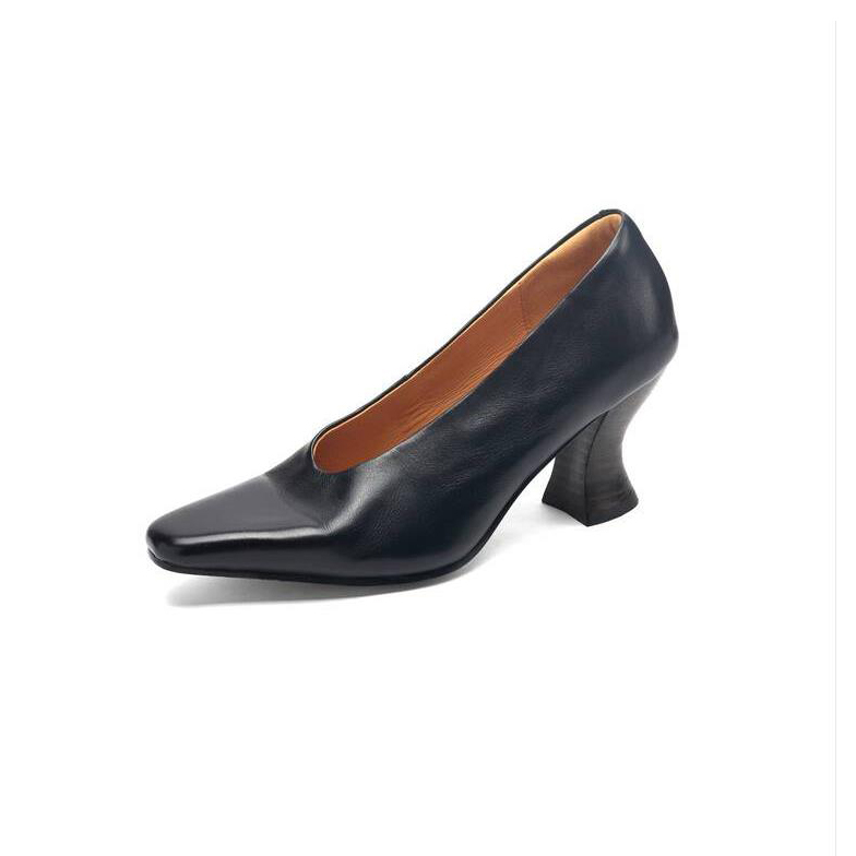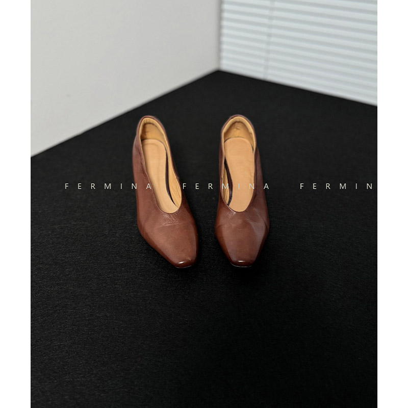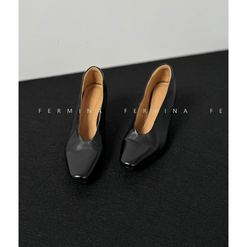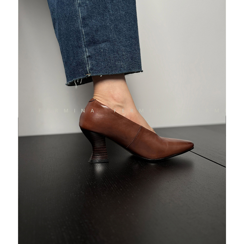 Fermina轻复古浅口单鞋女粗跟中跟女巫鞋牛皮超软简约百搭女鞋春