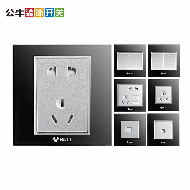 公牛黑色墙壁86型开关插座