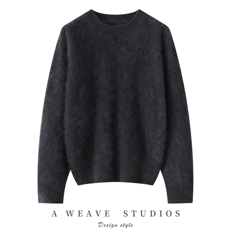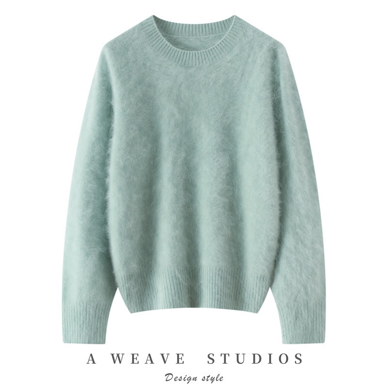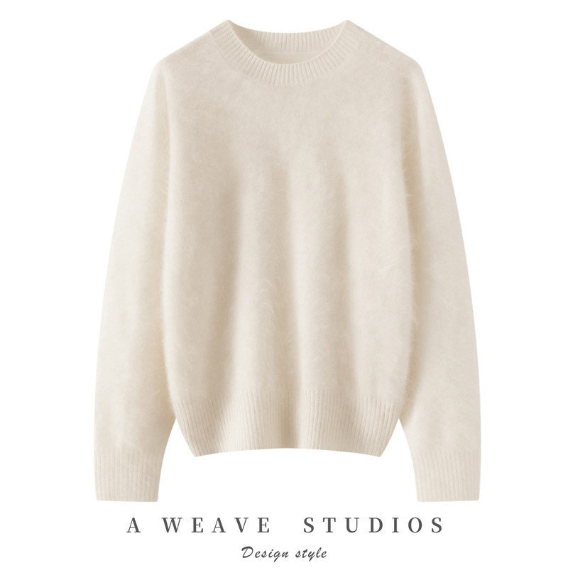 重磅加厚100%纯山羊拉绒衫女圆领宽松针织毛衣秋冬新款打底
