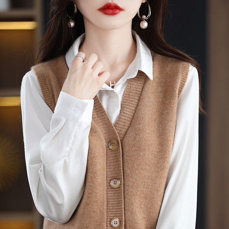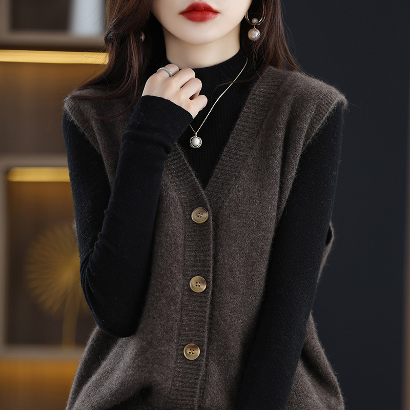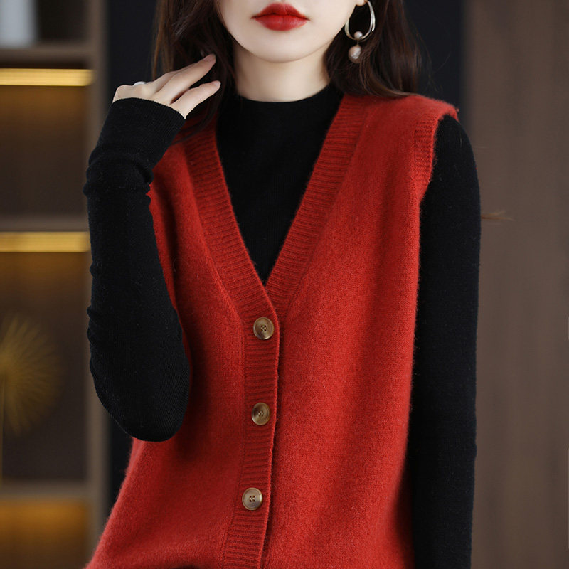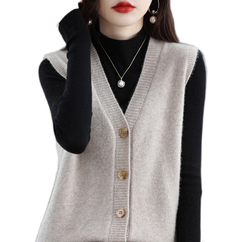 【断码清仓】新款100羊绒针织马甲开衫女V领无袖宽松大码百搭毛衣