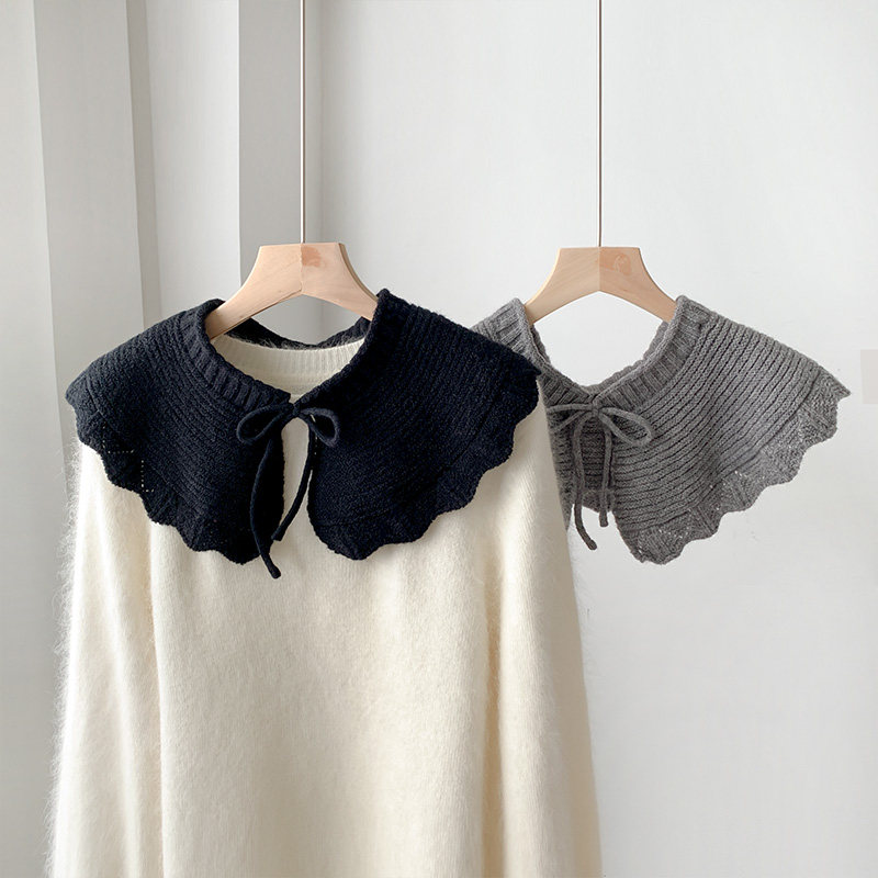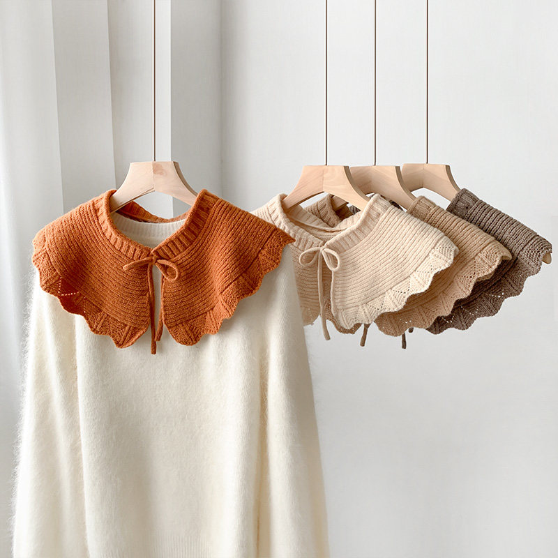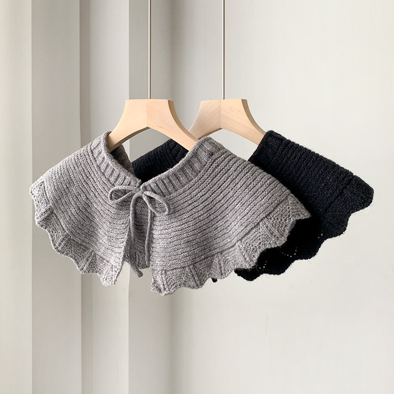 春秋质感韩版针织外搭保暖毛线假领子女冬季披肩围巾搭肩护颈斗篷