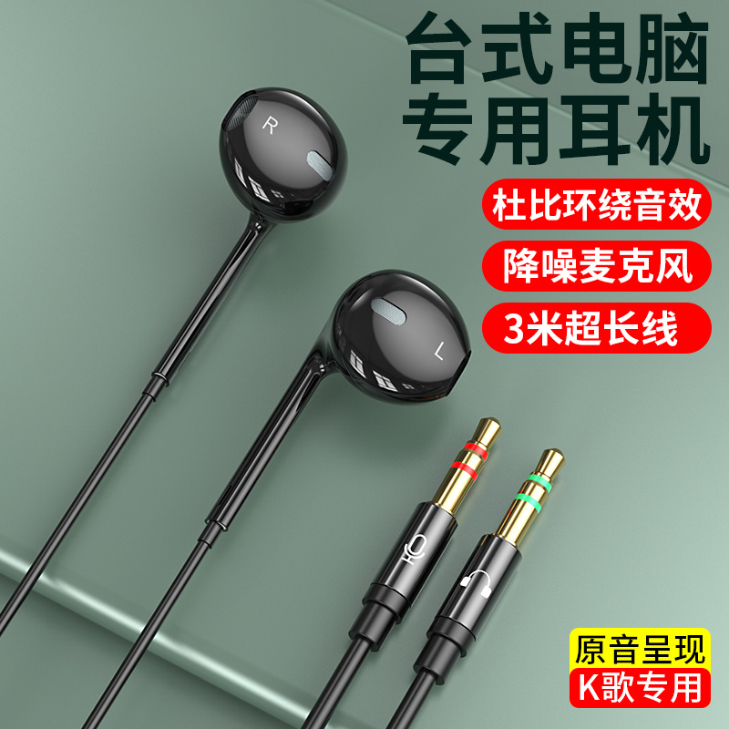 台式电脑耳机有线入耳式笔记本游戏直播办公带麦通话筒一体双插头