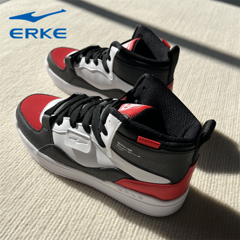 鸿星尔克男鞋高帮板鞋官方正品厚底增高休闲鞋秋季厚底男生运动鞋