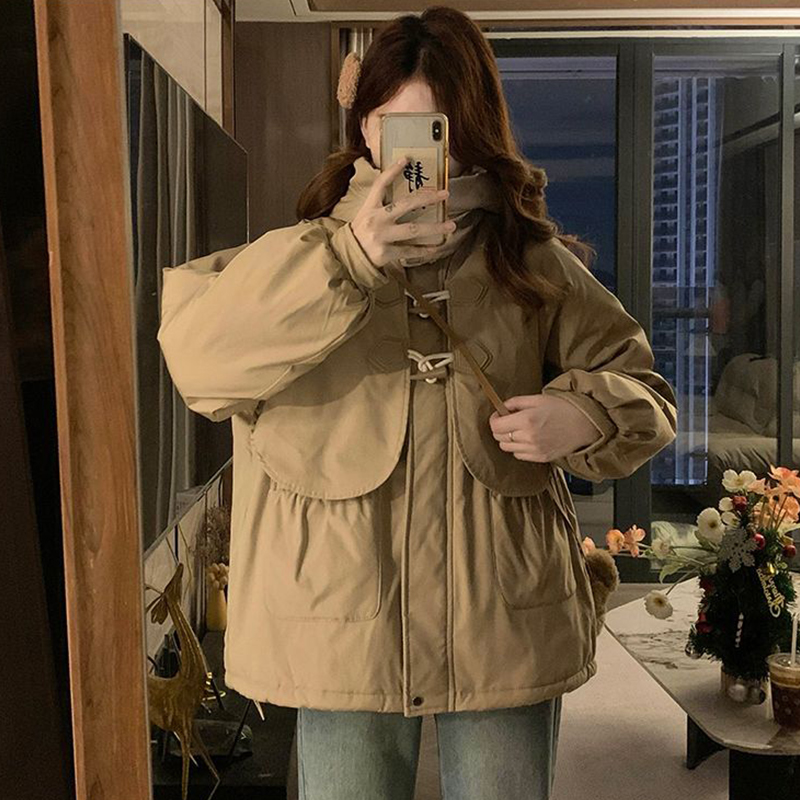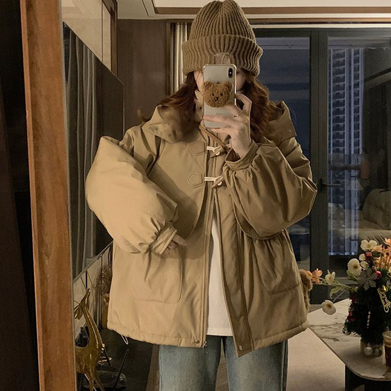 300斤大码胖mm韩系连帽棉服女冬季美拉德慵懒风面包服加厚外套潮