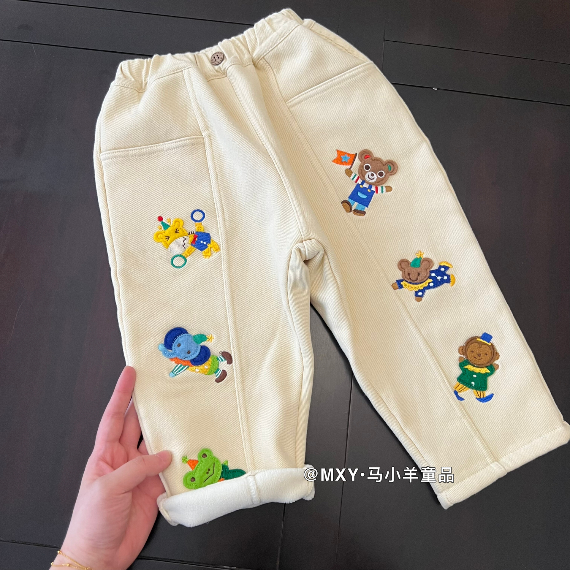 软糯百搭儿童加绒长裤!日系男女童可爱梭织弹力保暖休闲裤潮