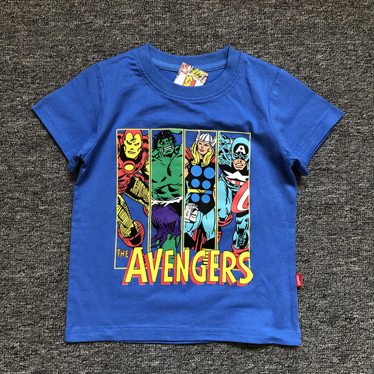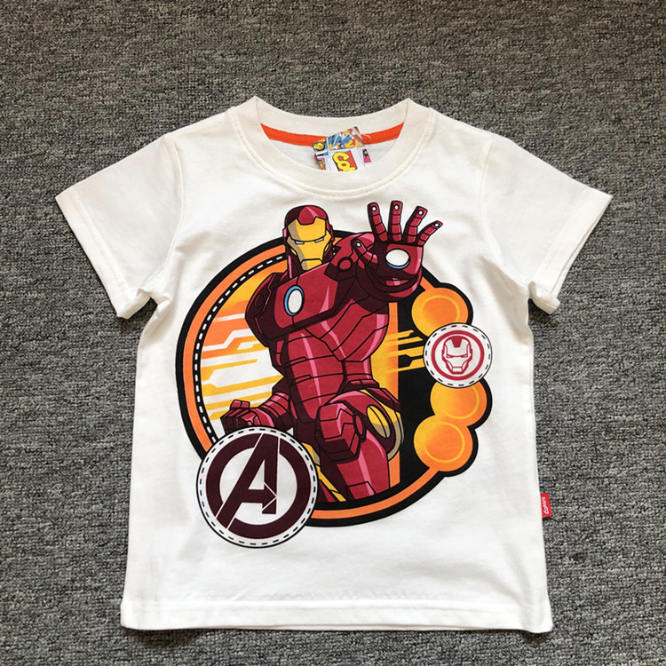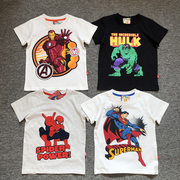 外贸漫威英雄男童纯棉短袖T恤打底衫印花蜘蛛侠钢铁侠绿巨人超人