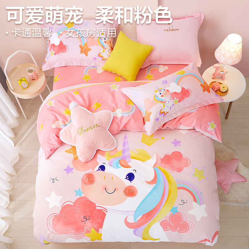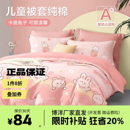 博洋儿童被套单件120x150秋冬季磨毛加厚纯棉女孩卡通学生被罩150