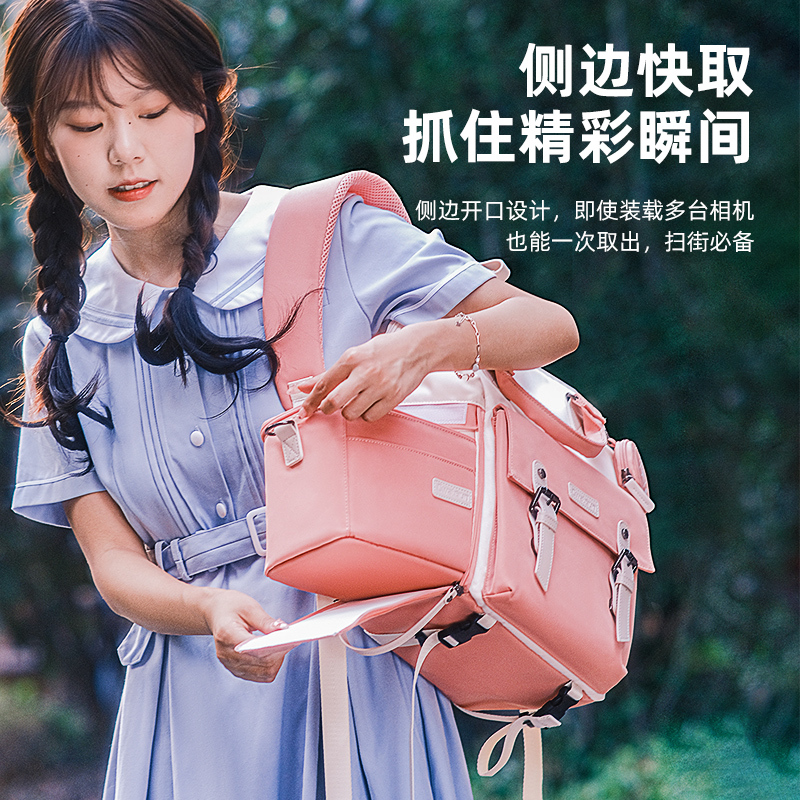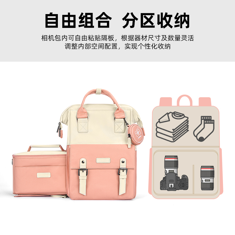 Cwatcun香港卡登双肩背包相机包收纳包内胆包休闲拼色微单反男女情侣摄影包适用富士xt50佳能R50索尼尼康z30