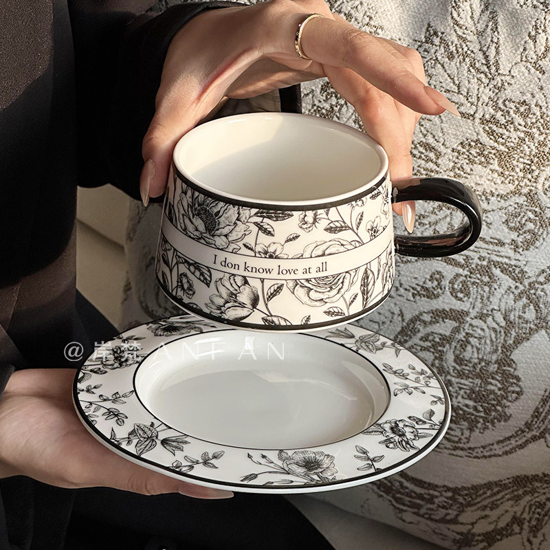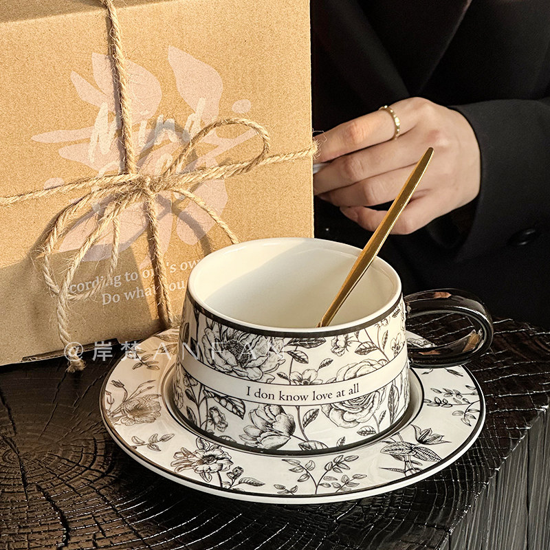 岸梵盛夏玫瑰精致咖啡杯碟陶瓷礼盒装套装下午茶杯子马克杯高级感