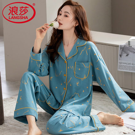 【浪莎】官方正品纯棉长袖睡衣女