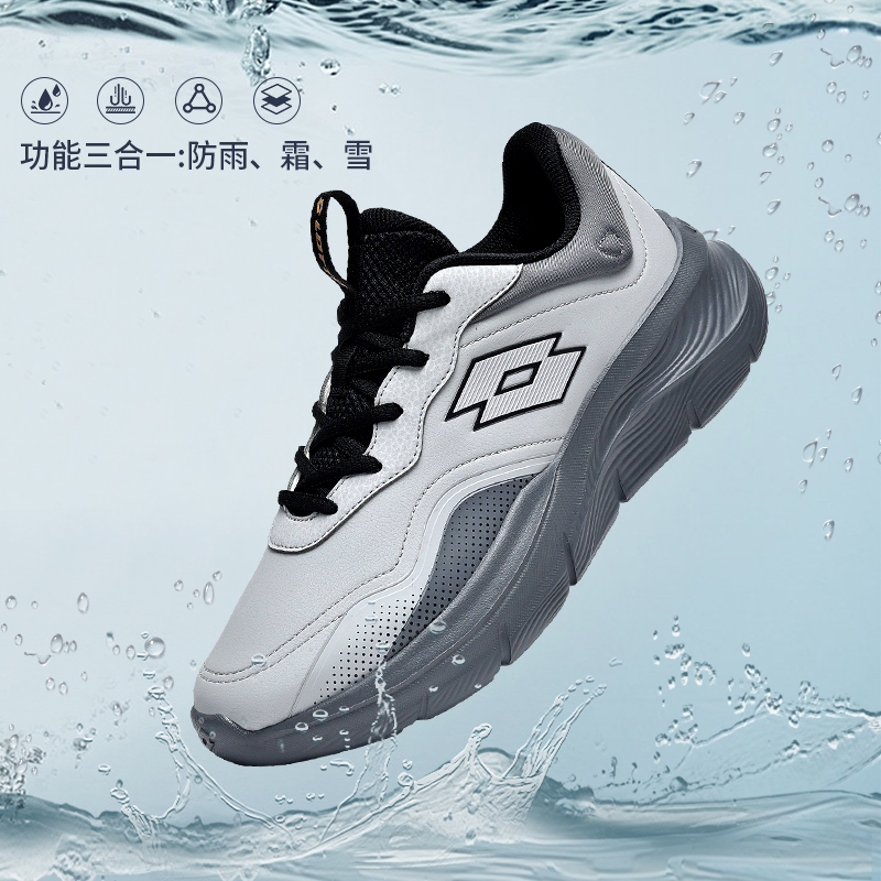 LOTTO乐途男皮面防水加绒运动鞋2025秋冬季新款黑色软底跑步鞋子