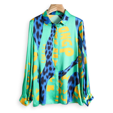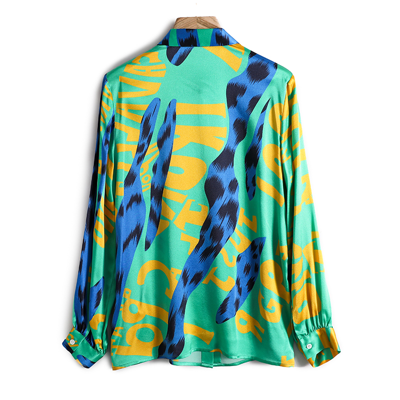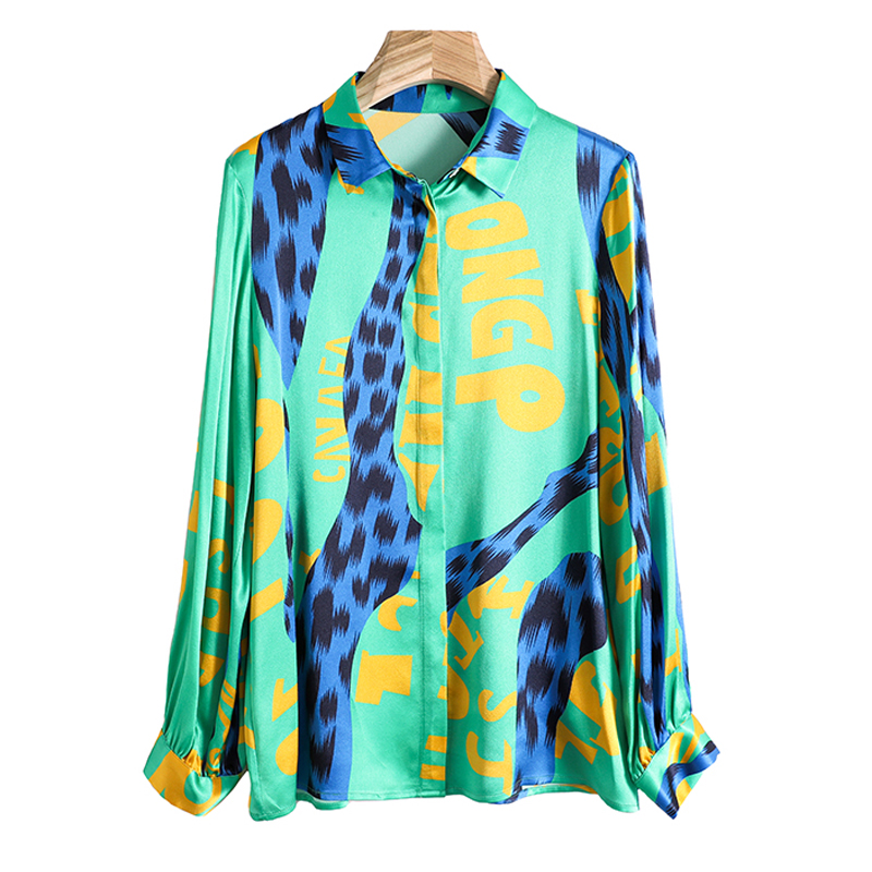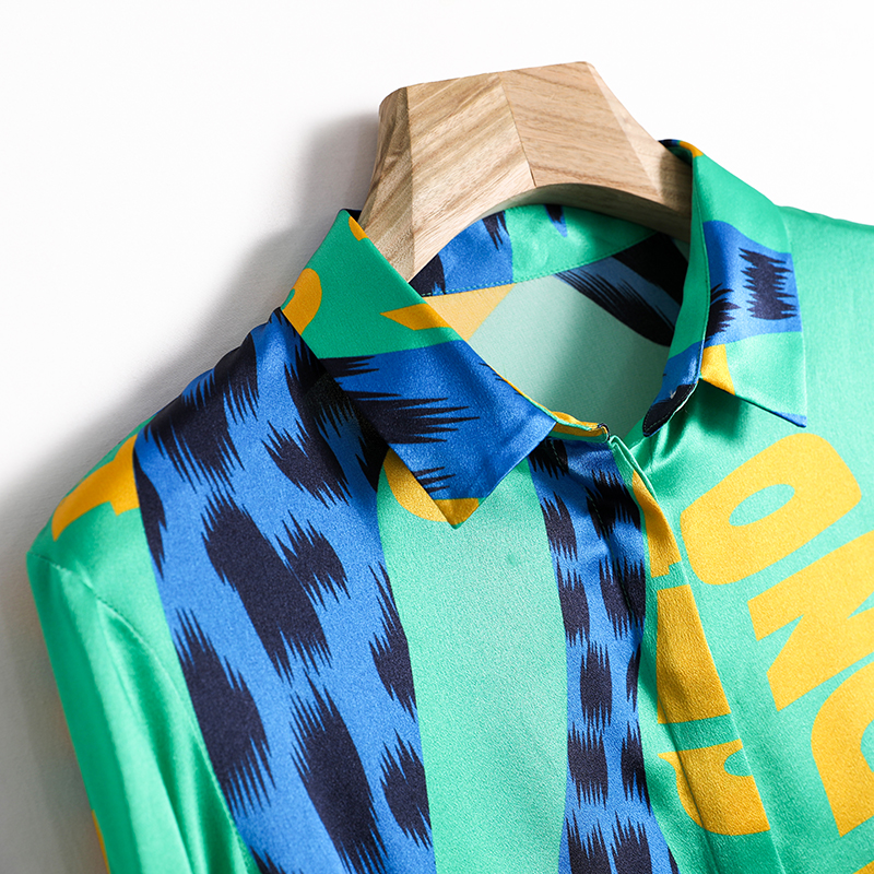 长袖桑蚕丝衬衫欧美宽松单排扣