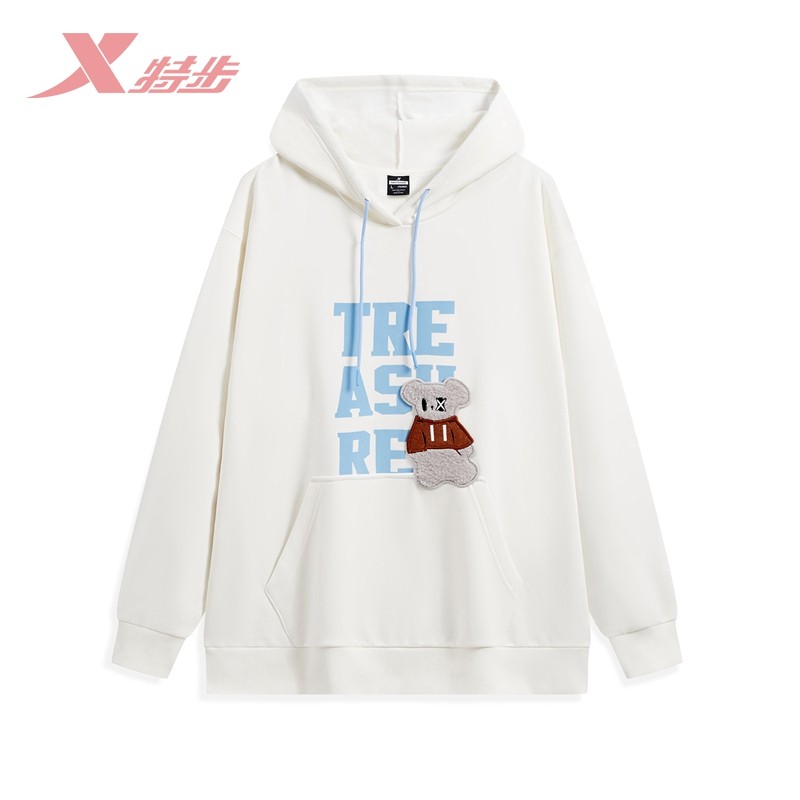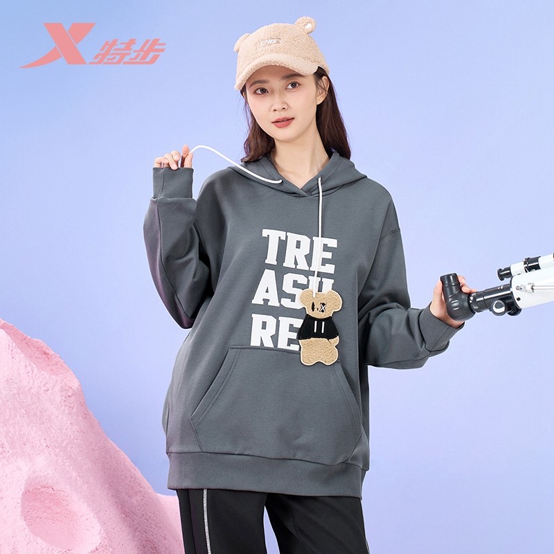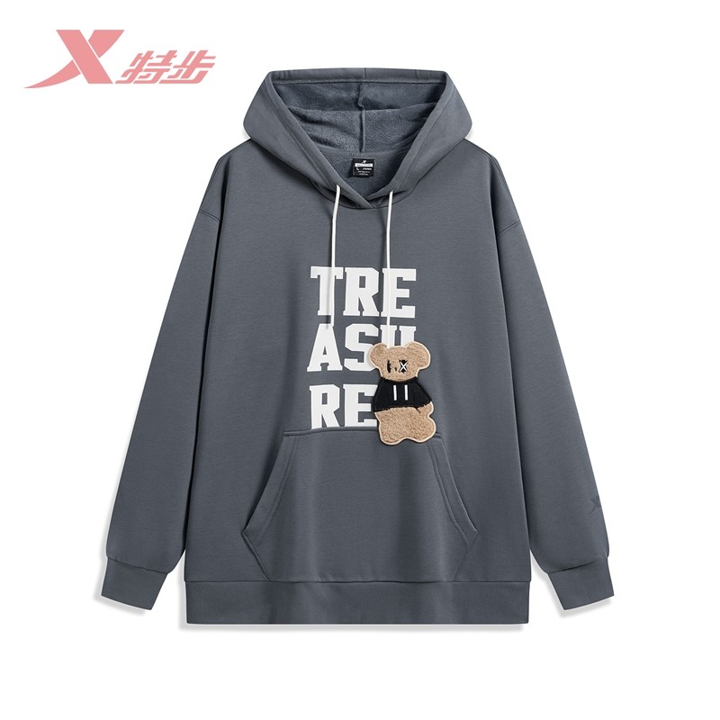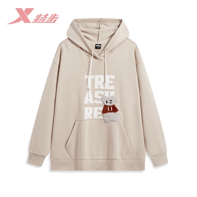 特步加绒连帽卫衣女款2023冬季新款正品运动套头衫977428930466