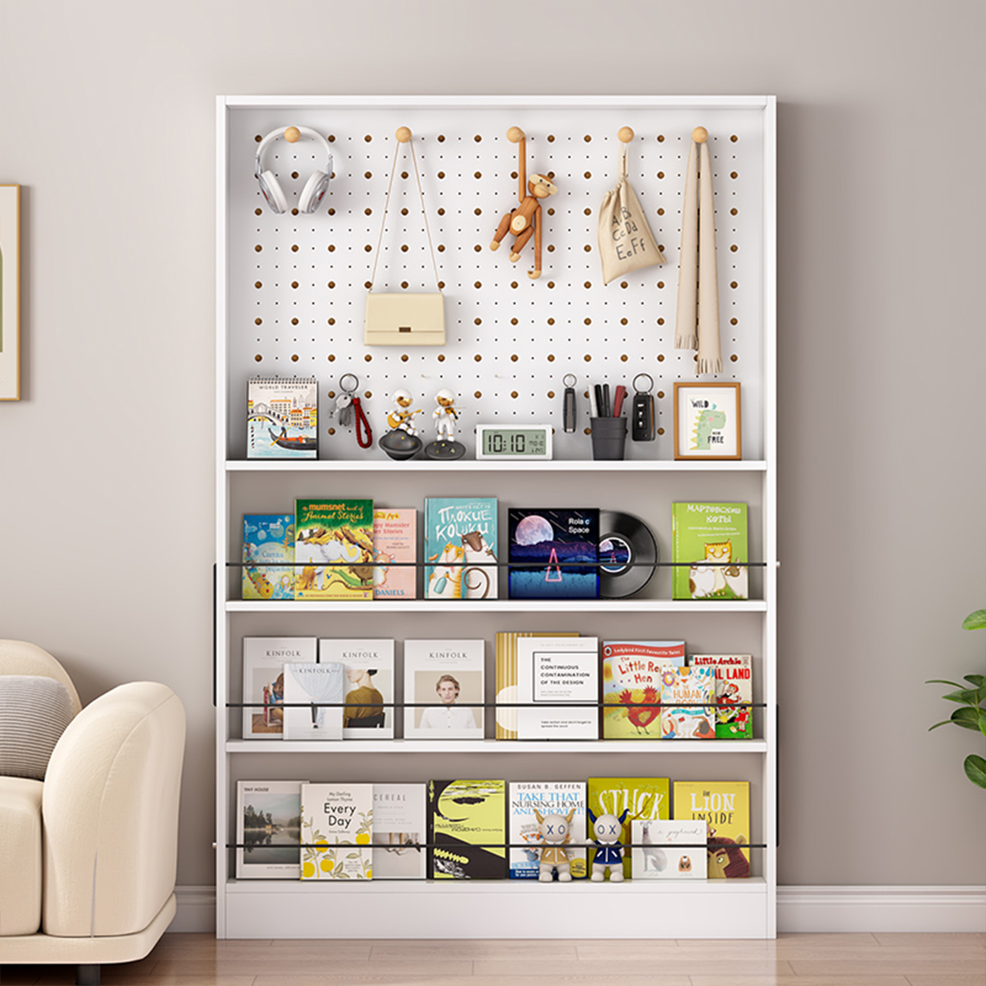 洞洞板门后书架绘本展示架