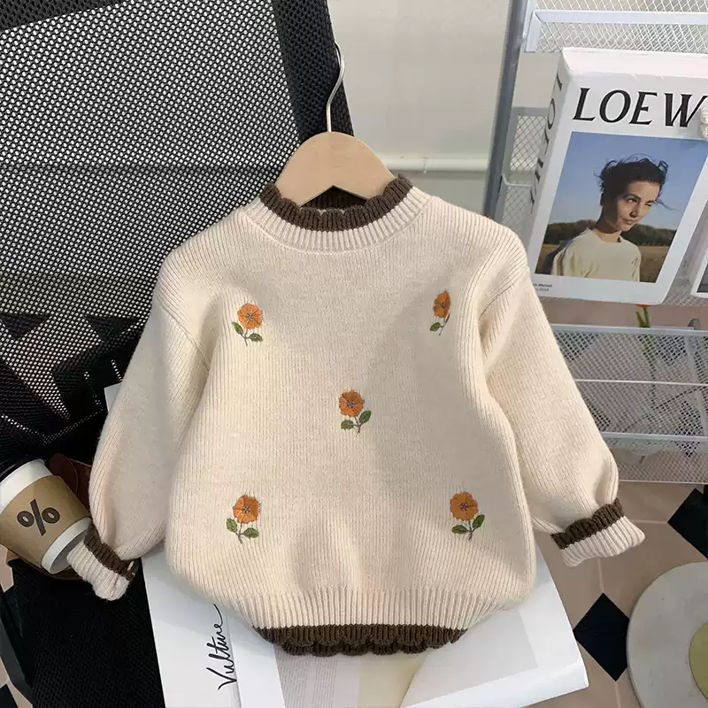 女童毛衣洋气2025秋冬新款韩版刺绣毛衣幼儿园宝宝套头打底针织衫