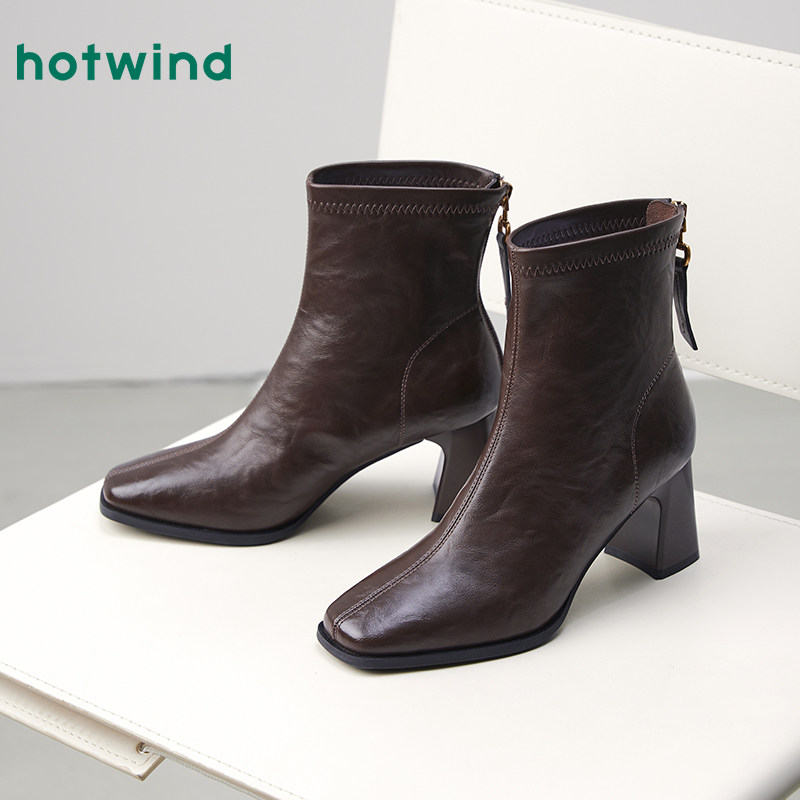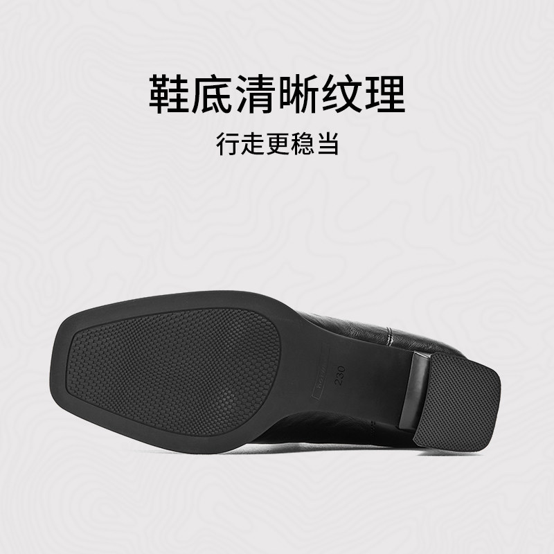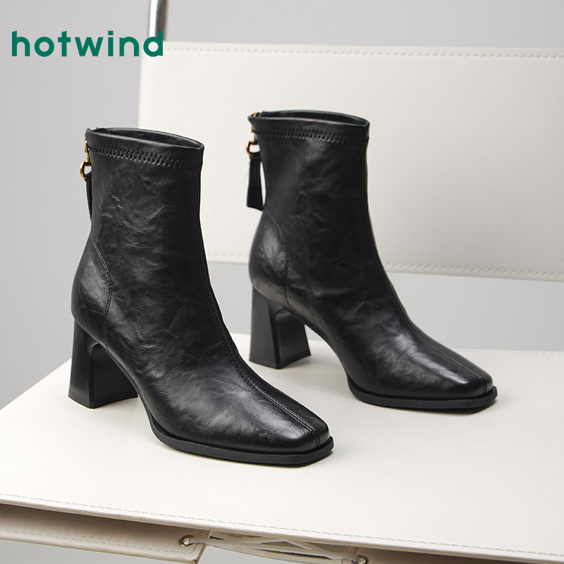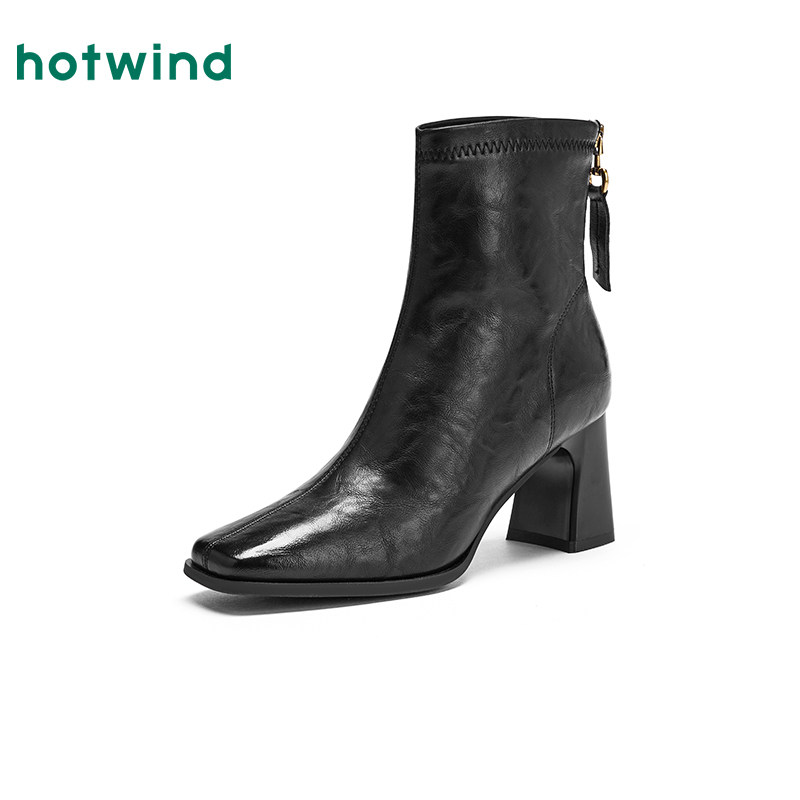 热风高跟时装靴2025年冬季新款法式方头粗跟短靴通勤休闲靴子女鞋