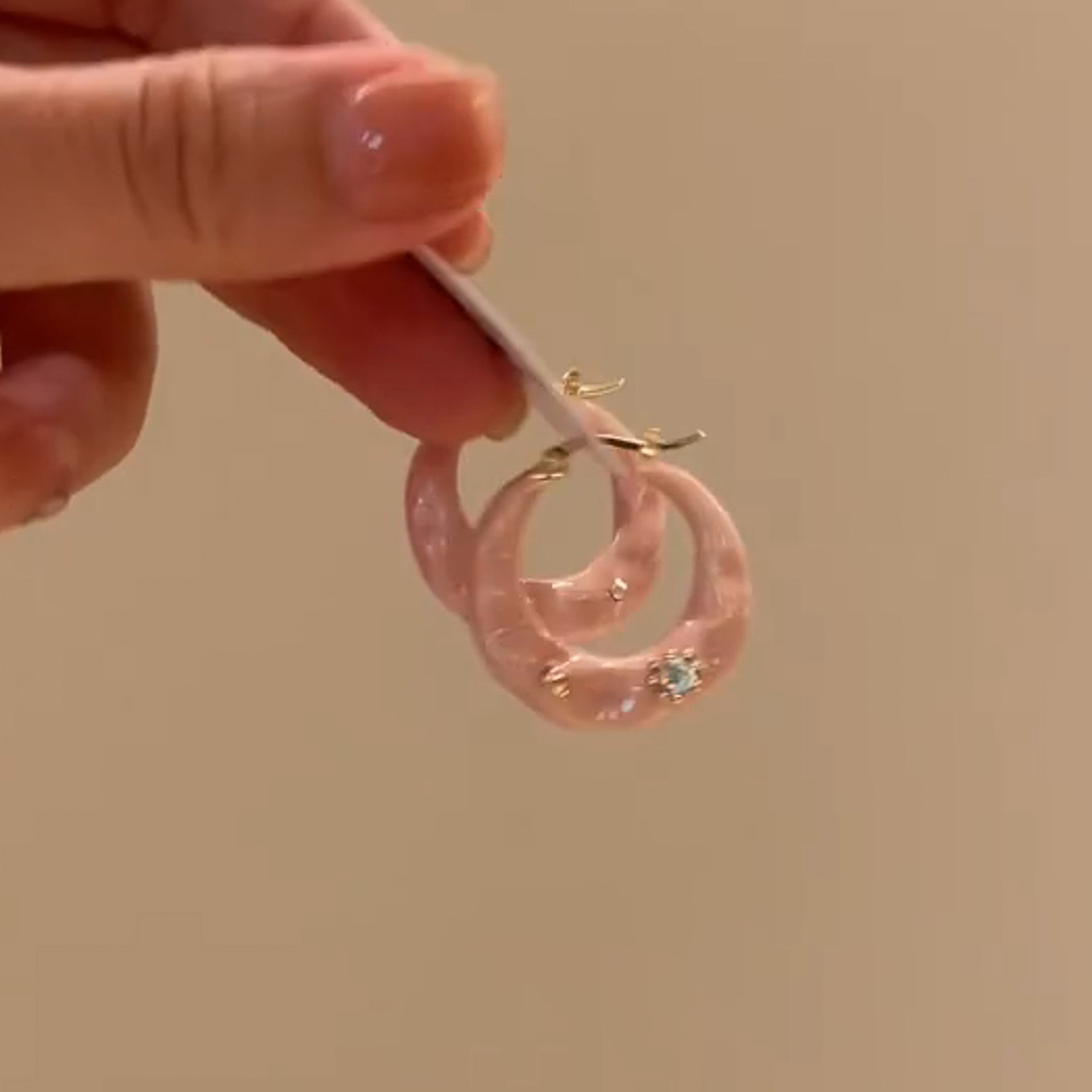 vintager复古甜美粉色滴油圈圈耳扣轻奢高级感小众独特耳圈耳环女
