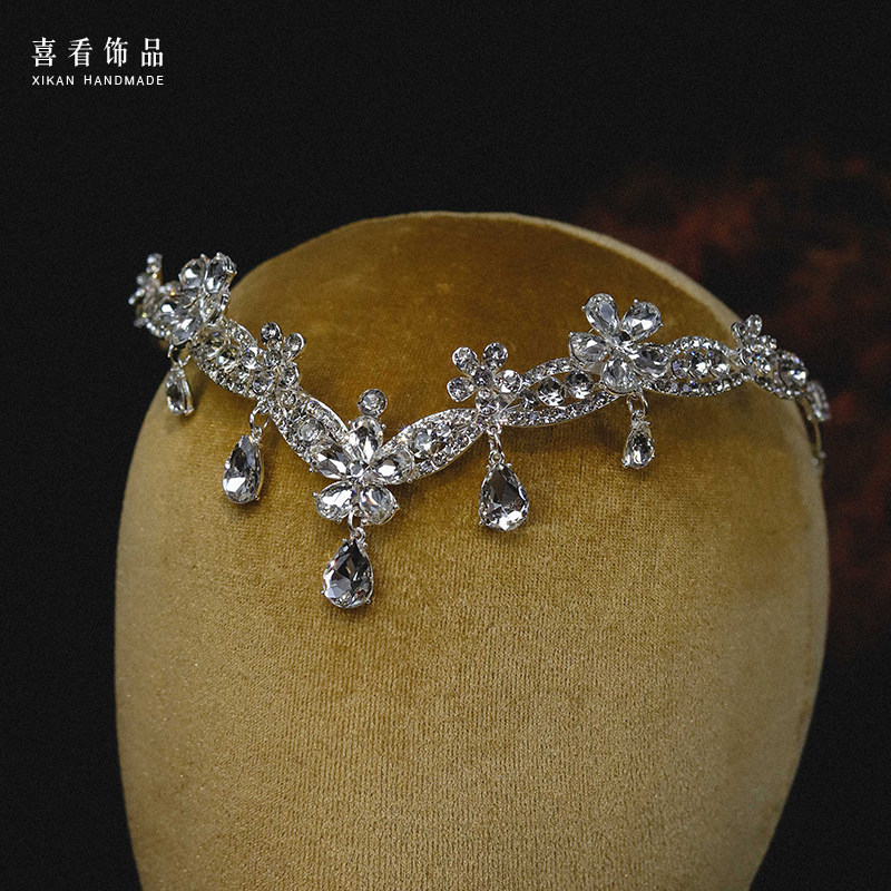 精致简约超闪水钻额链额饰新娘结婚礼服婚纱写真盘发造型皇冠配饰