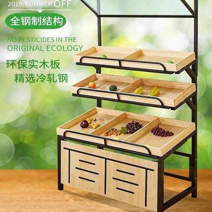 2026超市水果货架果蔬架置物架蔬菜架钢木架展示台商用摆果框木质