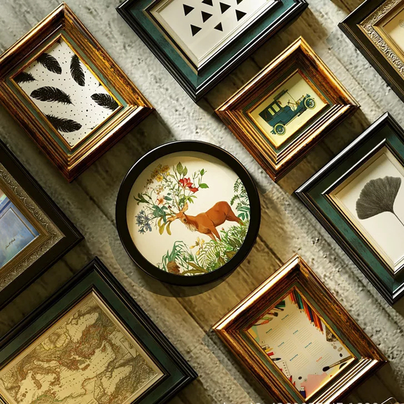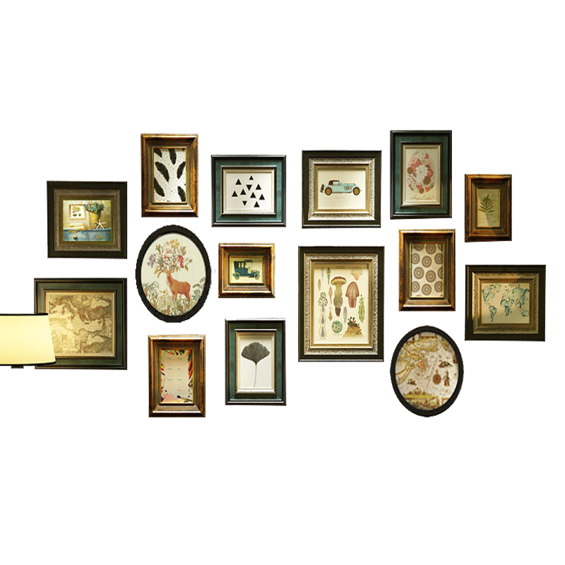 美式实木照片墙客厅餐厅装饰画背景墙轻奢相框免打孔挂墙画框组合