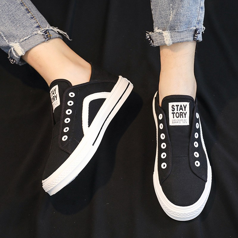 帆布鞋男夏季透气韩版半拖鞋潮流小白鞋男懒人一脚蹬男士休闲鞋子