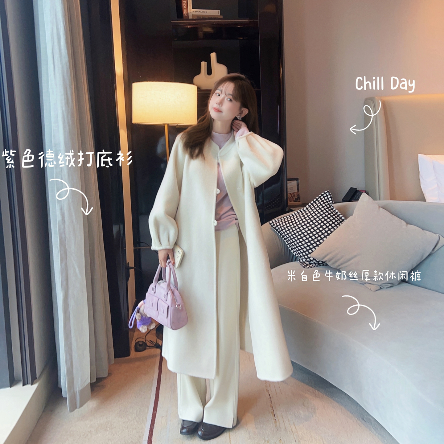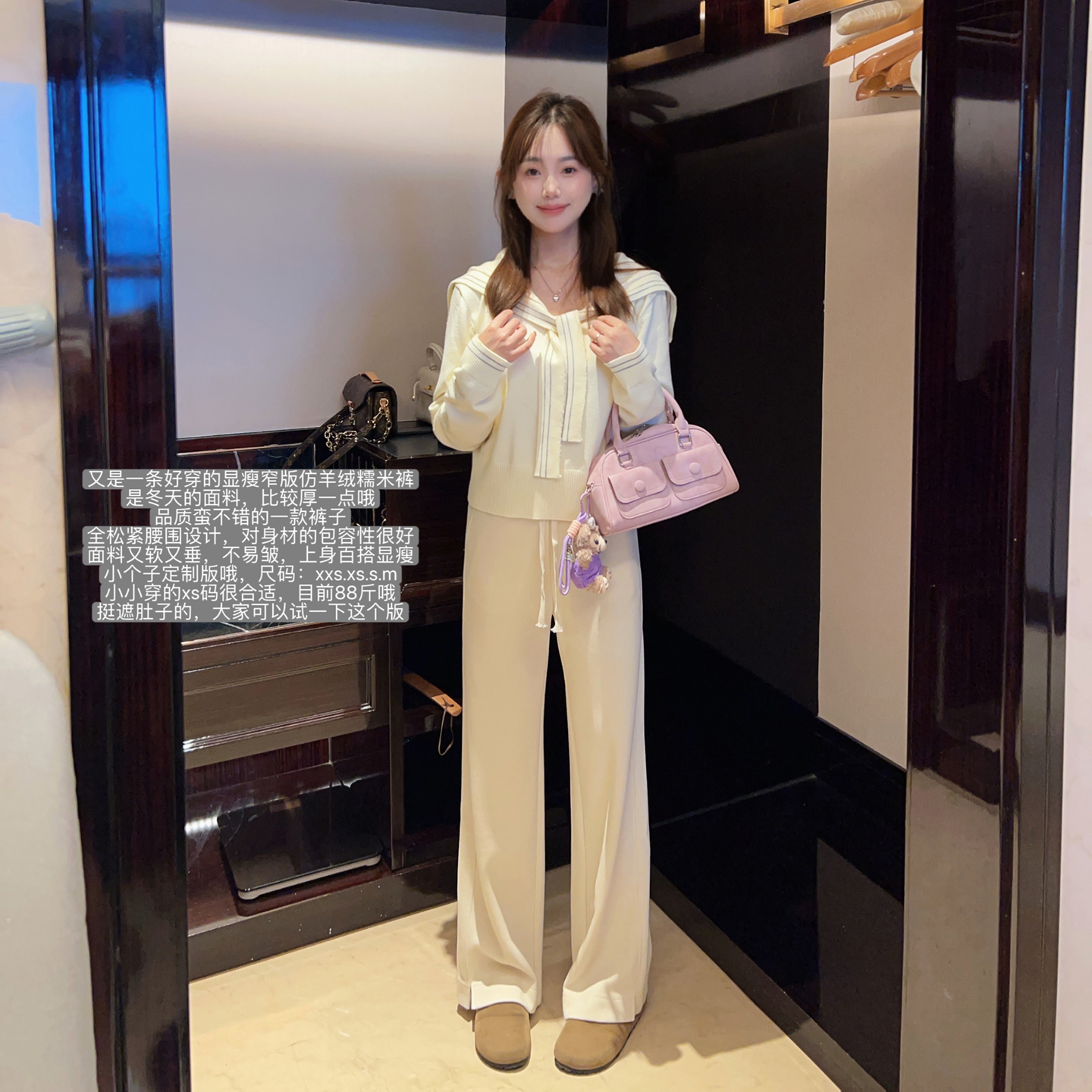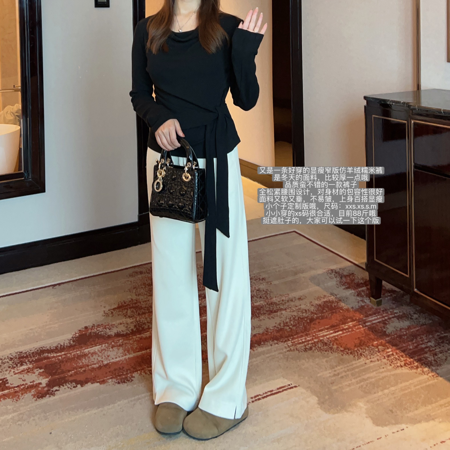 小小家 小个子小码小开叉显瘦窄版阔腿休闲裤垂感加厚实糯米裤150