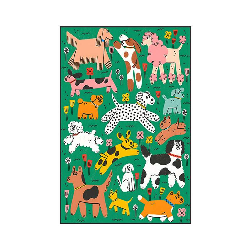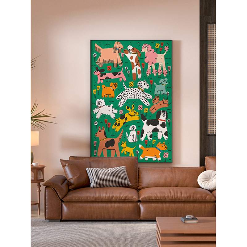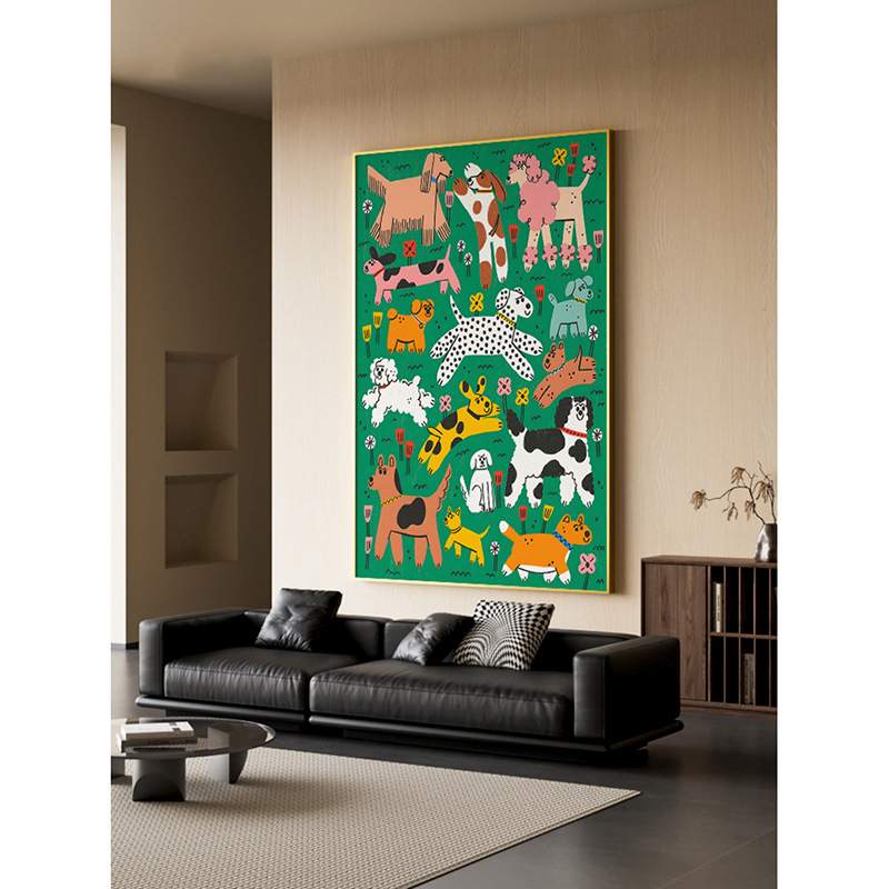 简约现代客厅玄关装饰画绿色小狗卡通温馨卧室床头壁画竖版挂画