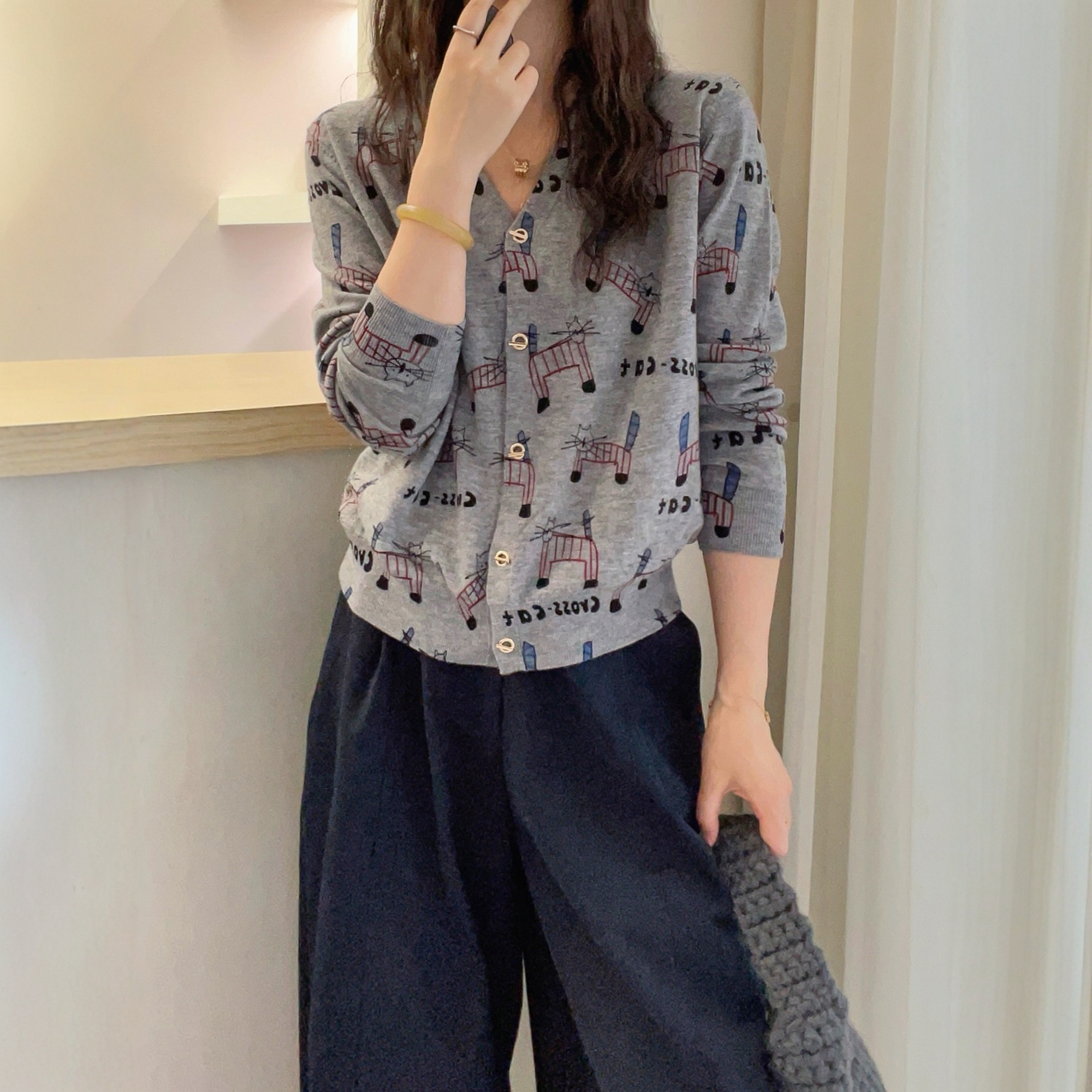 卡通小猫水溶羊毛针织开衫女欧洲站2025早秋新款欧货女装打底衫潮
