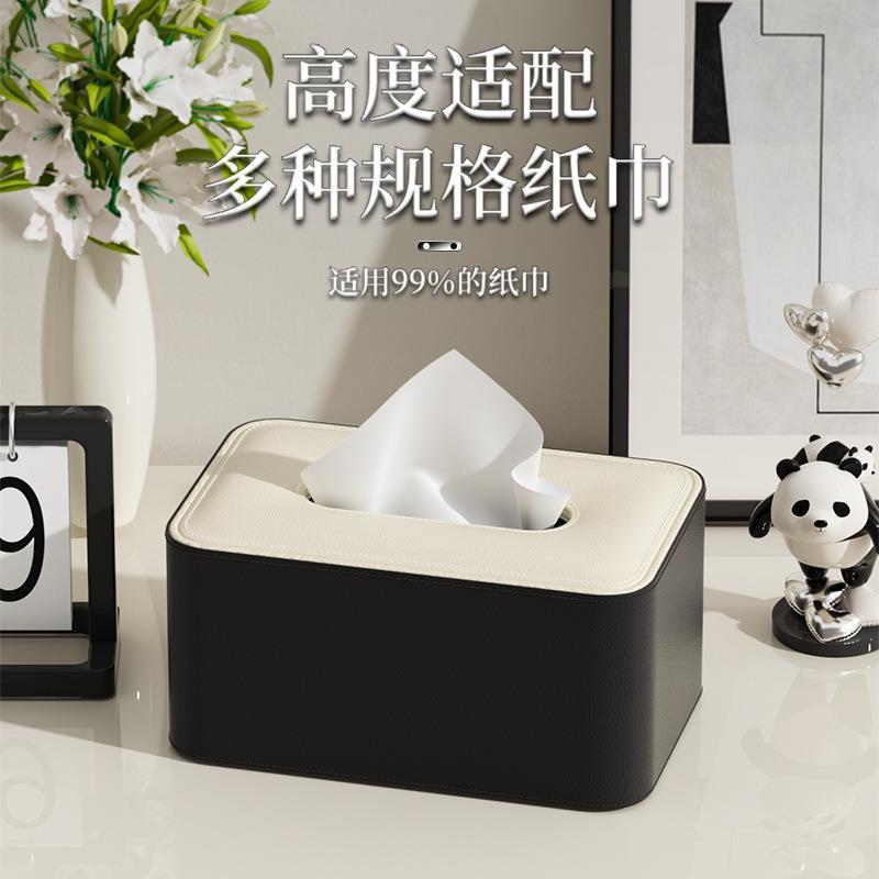 25新款黑白简约风皮革抽纸盒客厅茶几高级遥控器收纳盒纸巾盒家用